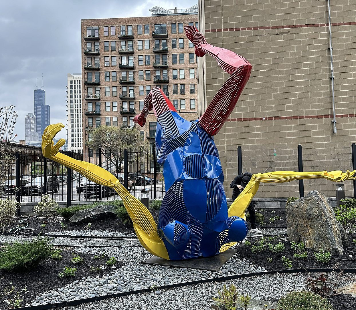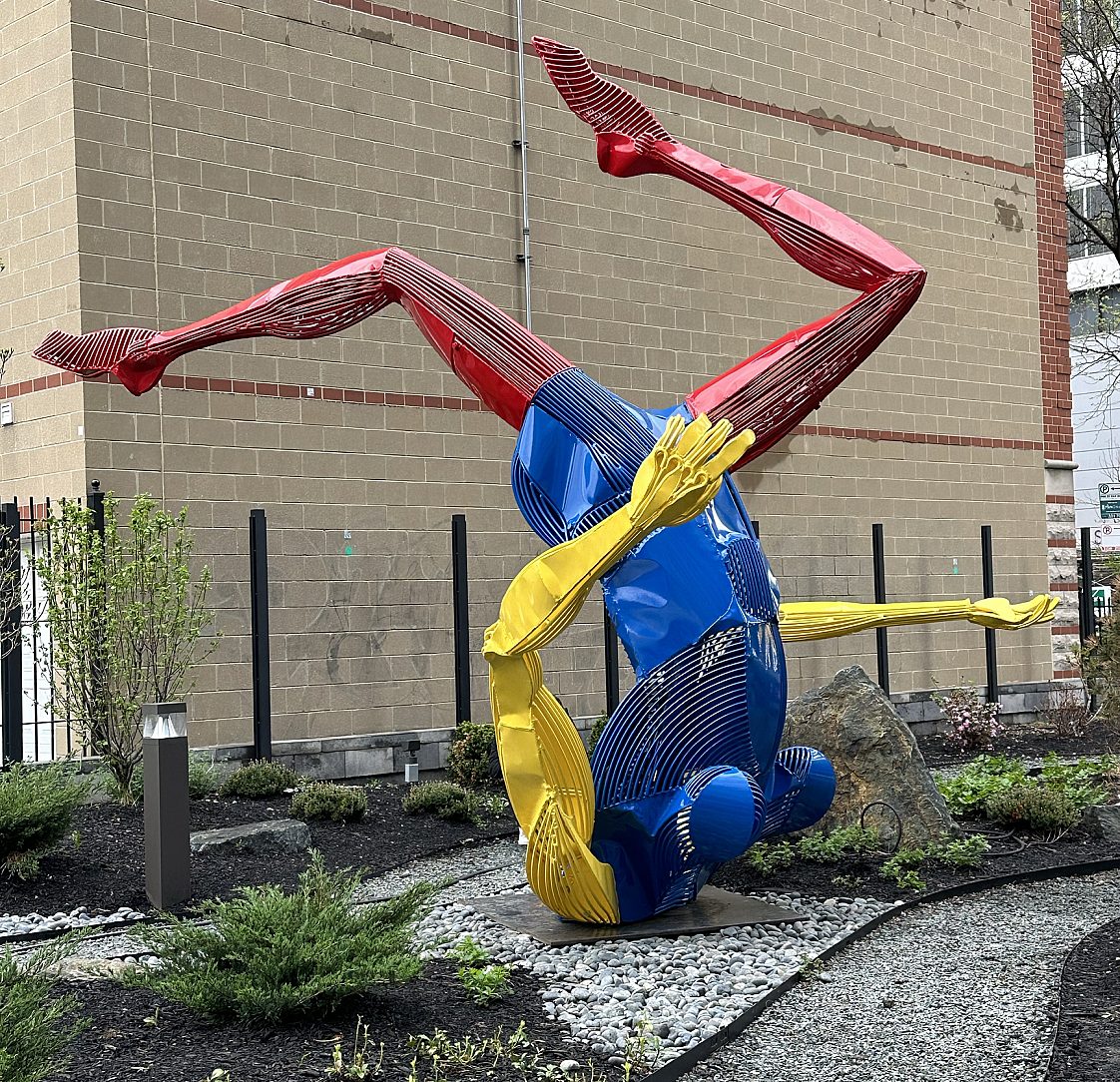 This sculpture was created to express movement through a medium that is inherently still. Hand-formed from round steel bar and shaped sheet metal, the artwork captures the fluidity of human anatomy in motion- freezing a single expressive moment in time. Its sweeping lines and layered contours invite viewers to consider how steel, though rigid and permanent, can be shaped to reflect grace, energy, and life.