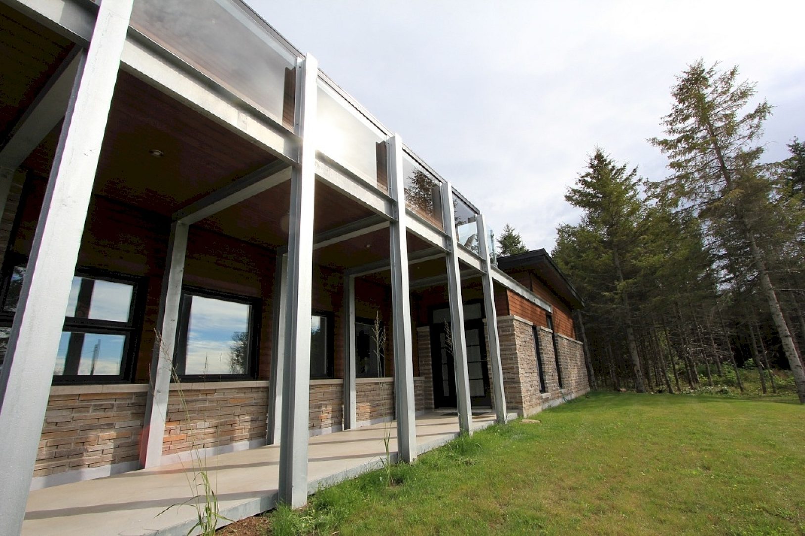 The new home of Hélène Guimont, beautifully situated on the lower peninsula of the Saint Lawrence River in Rimouski Quebec, is striking blend of classic and contemporary design cues.