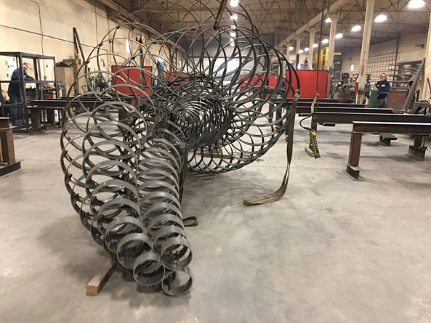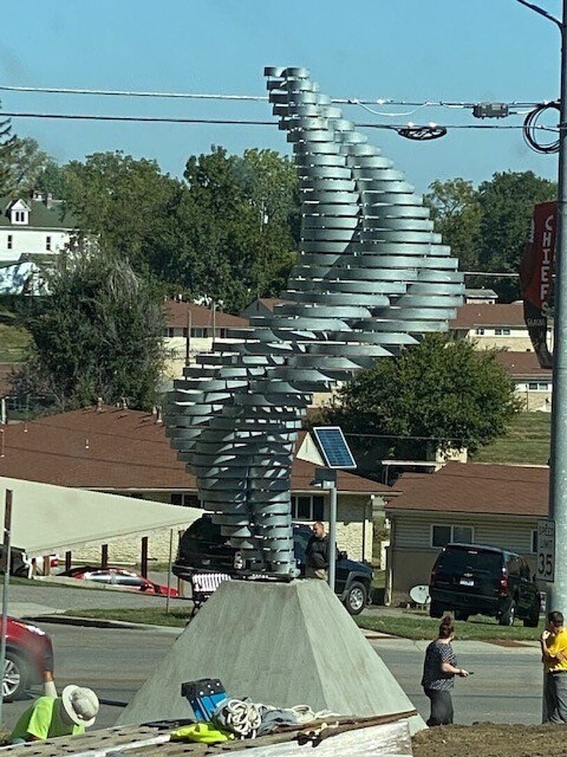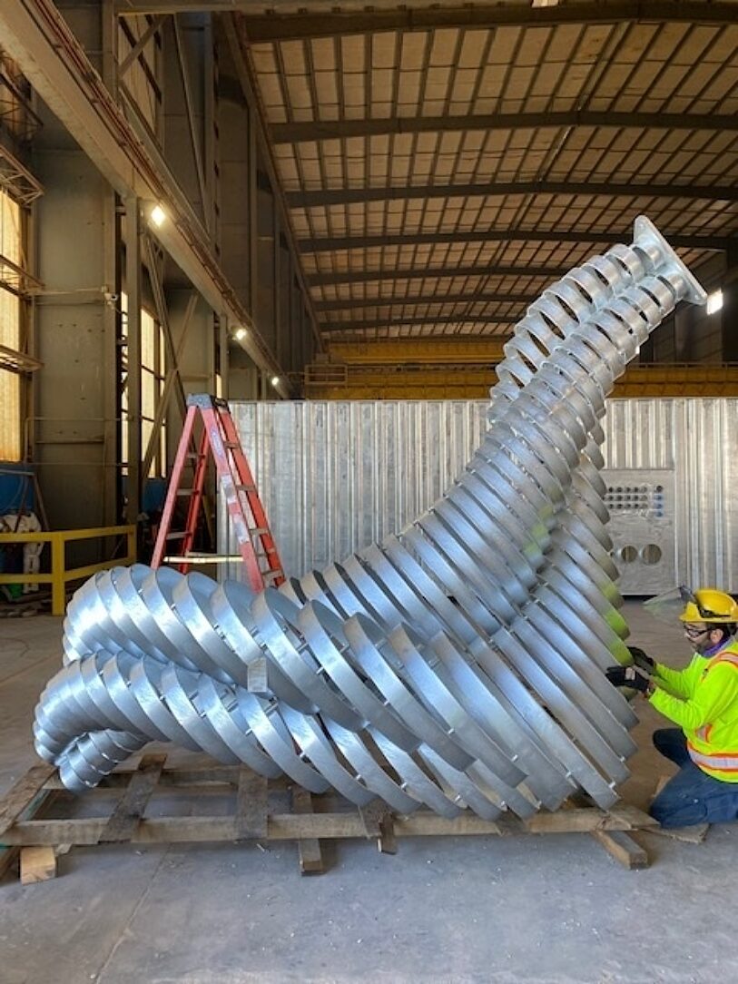 The Heliko sculpture represents AKMA’s commitment to supporting and promoting local artists in a “cutting edge” way. The artist is from a town just 20 miles away and the fabrication was completed in the same city the museum is located in- St. Joseph, MO. With strong local ties, longevity of the sculpture was vital to all project members. The sculpture is situated outdoors and was made of steel making it susceptible to unsightly corrosion. Due to the fabricators extensive experience with steel, they were able to recommend a galvanized coating. Hot-dip galvanizing provided an affordable solution that would deliver a consistent appearance with little to no maintenance or repairs necessary in the future. When selecting the galvanizing provider, the fabricator had to consider bath size but a commitment to quality and service also contributed to the decision. They selected a company that produced quality results in the past and the completion of this project measured up to the expectations.