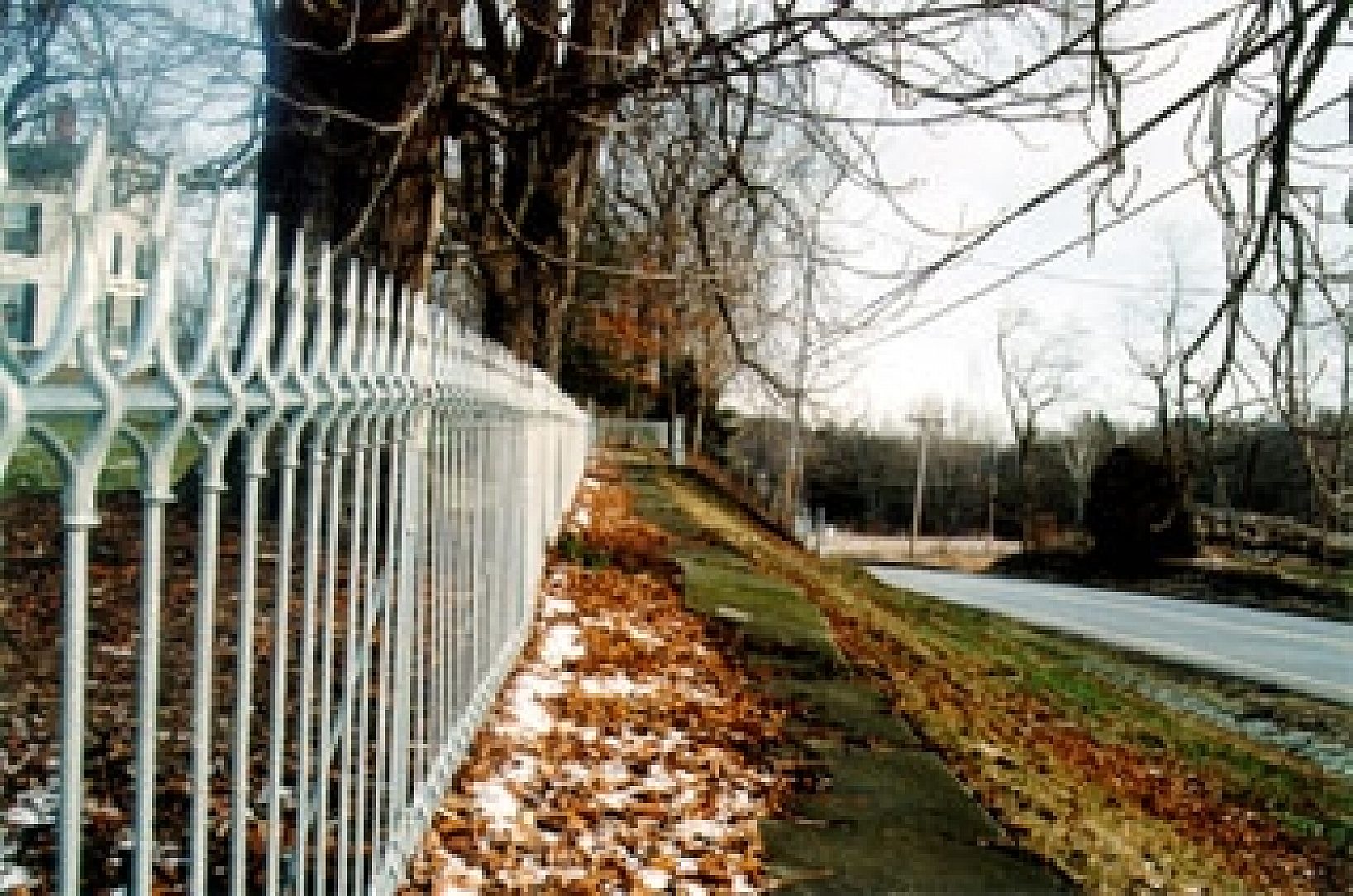 This picturesque farm property has been delineated by the same 400' of iron fence since 1857 and painted countless times. Falling into disrepair, the community faced the decision to replace or repair & paint. A creative engineer proposed to hot-dip galvanize and then repaint the old fence so that the frequency of painting would be minimized and the zinc coating would protect the fragile fence. Not exactly straightforward as most projects, the fence was meticulously disassembled, sandblasted, carefully cleaned (pickled) by the galvanizer prior to immersion in the zinc bath, galvanized and marked for installation. After installation, the intent was to wait 12 months and then paint the fence after the final protective zinc patina had formed. Surprisingly, the community overwhelmingly decided that the zinc coating was terrific looking and that no painting would be needed.