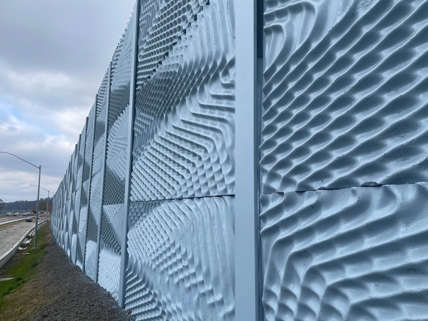 The Highland Park Interchange project in Pittsburgh had a dual objective: to alleviate traffic congestion and address safety concerns at the Route 28/Highland Park Bridge/Freeport Road Interchange. A key aspect of this endeavor involved the strategic installation of sound barriers featuring large steel beam columns. To ensure durability, these columns were galvanized and then painted, marrying functionality with aesthetic considerations. As part of the collaboration between PennDOT and the Office for Public Art, Pittsburgh-based artist Brian Peters was enlisted to design a unique sound barrier along SR 28. This artistic touch not only complemented the overall project but also contributed to the creation of a distinctive visual landscape.