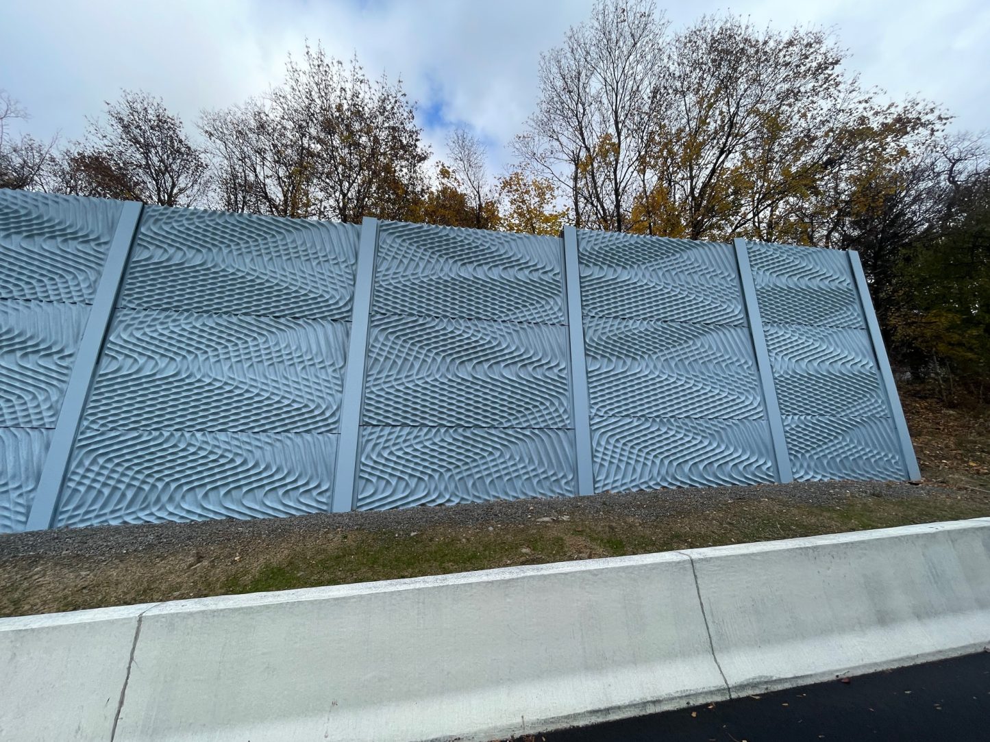 In the execution of the project, a deliberate choice was made to paint over the galvanized steel used in constructing the sound barriers. This decision not only enhanced the corrosion resistance of the structures but also aligned with the artistic vision of Brian Peters. The combination of galvanizing and painting was a strategic move by PennDOT, ensuring the longevity of the steel structures in diverse environmental conditions while maintaining visual harmony with the artist's designs. Not only did they paint the beams, but they also painted one side light grey and the other dark. The side facing the residential neighborhoods is dark to blend in, and the light grey faces the highway. These beams stand out and will maintain this shine for many years to come. This project is an outstanding example of galvanizing excellence!