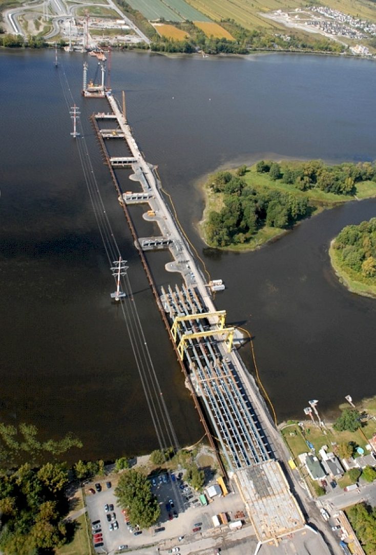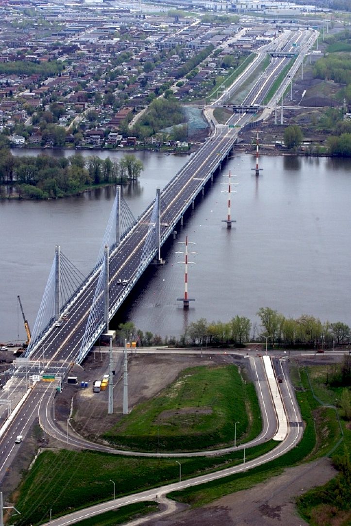 The construction of this privately funded highway and bridge is part of Quebecs plan to expand and revitalize its highway infrastructure across the province.