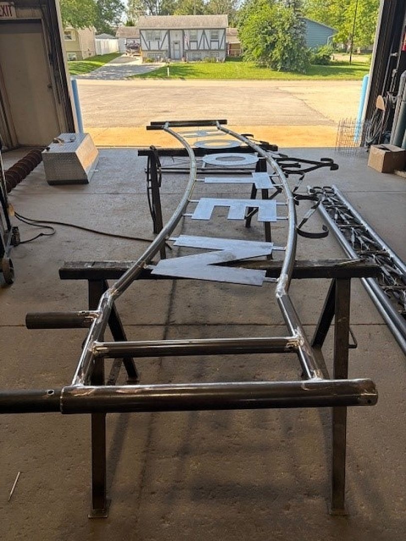The entire structure was galvanized, including decorative sign top and the scrollwork sides.