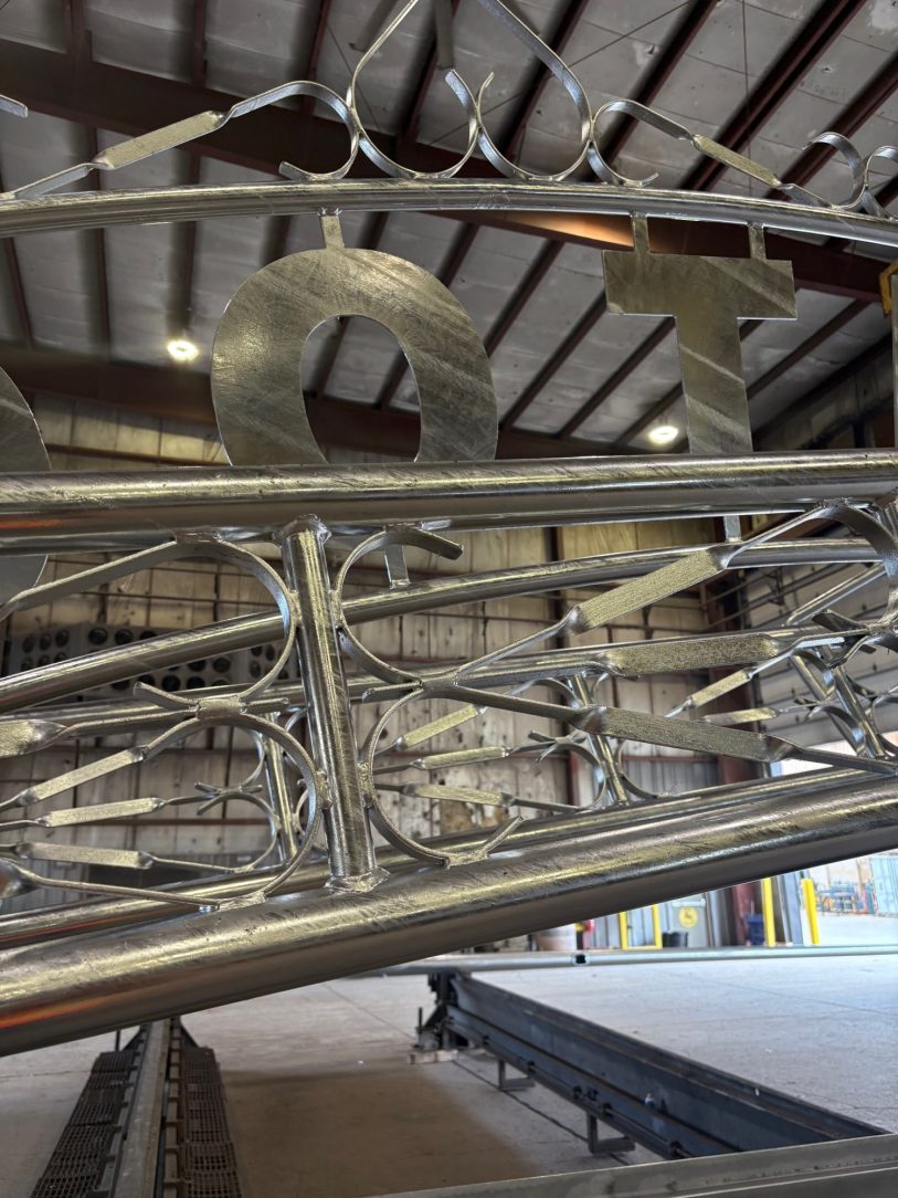 Randy drew up his design in CAD and presented it to the Lincoln Township Trustees. The trustees loved the design and readily signed off. Fabrication was completed in August, and the entire structure was transported to the galvanizer for its coating. The galvanizer chosen for this project had a great relationship with Randy, and was able to provide their services at a discounted rate, knowing this project would stand as a beautiful civic contribution to the community. Once completed, the new gate was installed at the cemetery in September 2025.