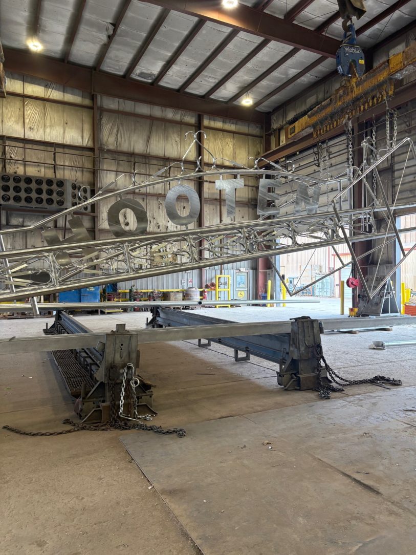 Randy, recognizing the importance of architectural details, used the original design as a template, but he made important structural changes that would ensure functionality and durability. Instead of rivets, he would weld the joints. He beefed up the structural members to provide strength and stability in the harsh Iowa winds and tornadoes. He raised and widened the entrance gate to accommodate modern equipment requirements. He designed the entire structure so that it could be transported and fastened together in sections on site. And perhaps most importantly, he chose to galvanize the entire structure to provide resistance to corrosion.