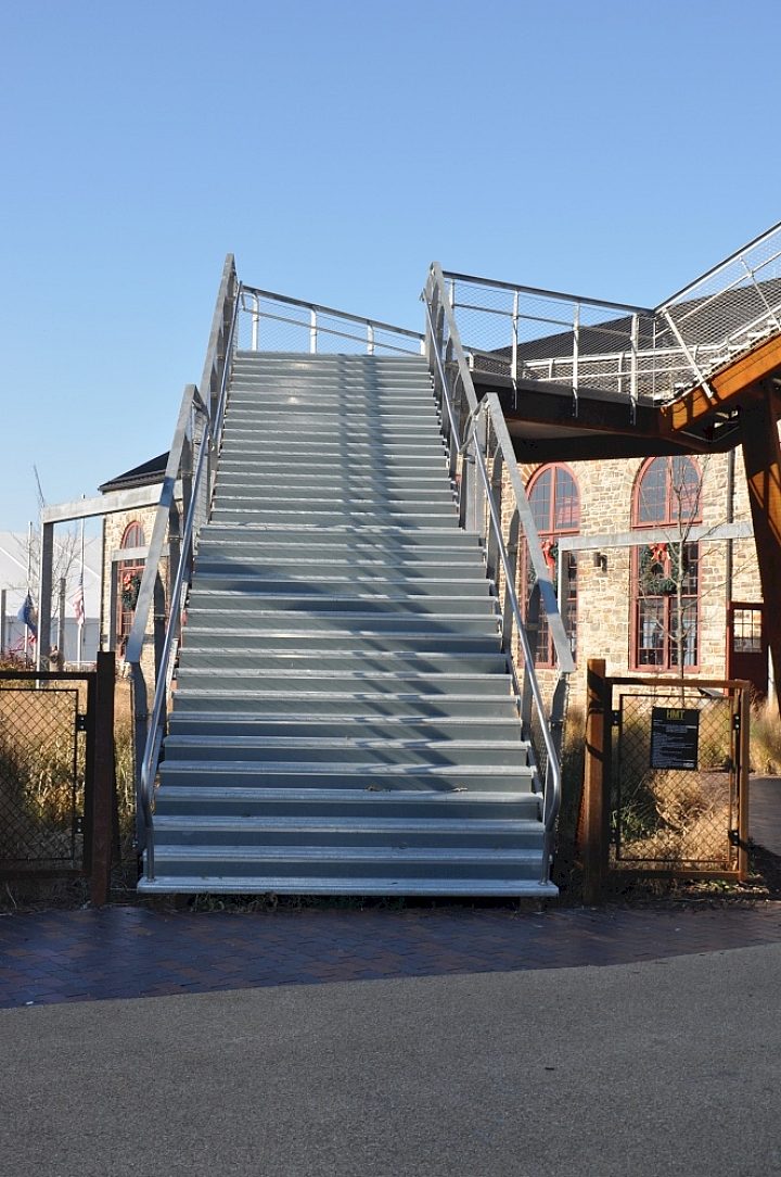 They have constructed Platforms that completely wind around all of the equipment and smelting pots, inside and out. All of the material, floor beams, flooring and handrail utilizes hot-dip galvanized steel. When the Architectural Firm was asked why Galvanized Steel? He responded what kind of question is that, what else would we use?
