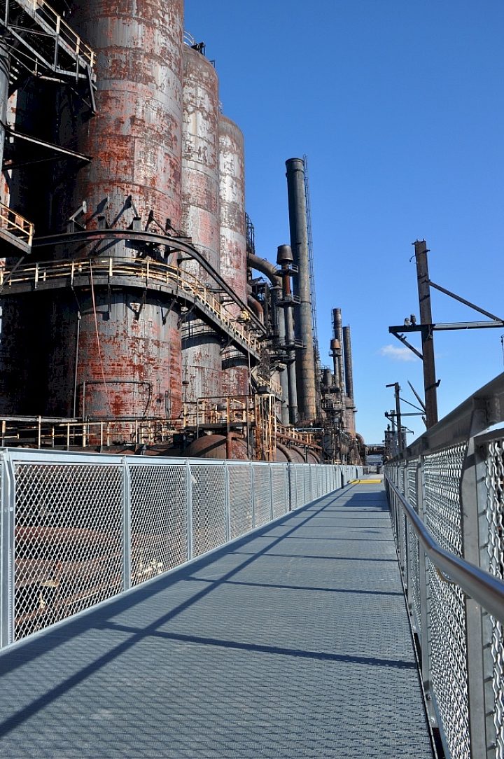 The Bethlehem Steel plant has been turned into a tourist spot of how American ingenuity in the steel industry. The Redevelopment Authority of the City of Bethlehem got together with Architectural firm of Wallace, Roberts & Todd to turn this potential eye sore into a very popular tourist attraction. The City of Bethlehem, Pennsylvania has been very proud of their history and birth of the American Steel Industry.