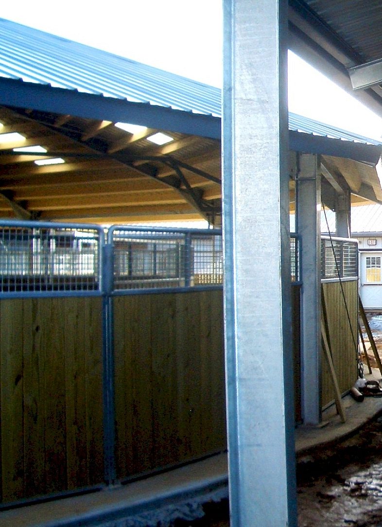 Hot-dip galvanized steel ranges in use from the steel structure, hanging rotating gates, sprinkler systems, and fencing. Galvanizing ensures these sensitive animals do not accidently ingest damaging paint chips.