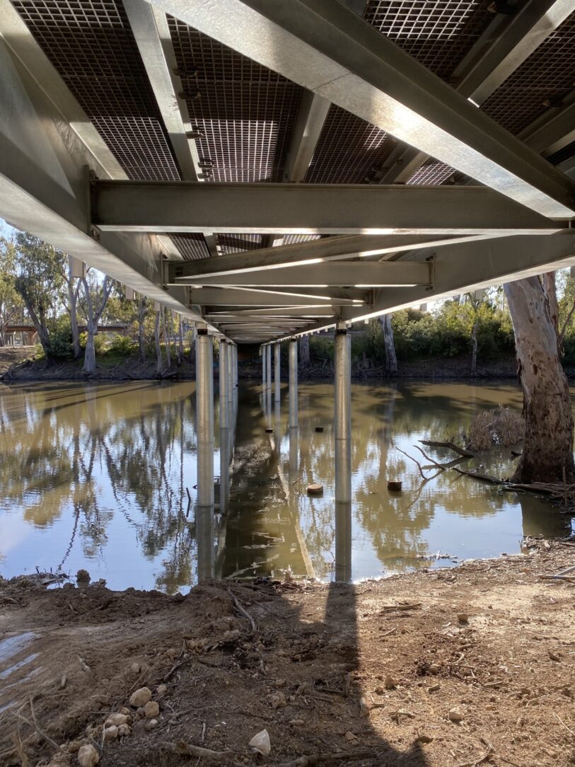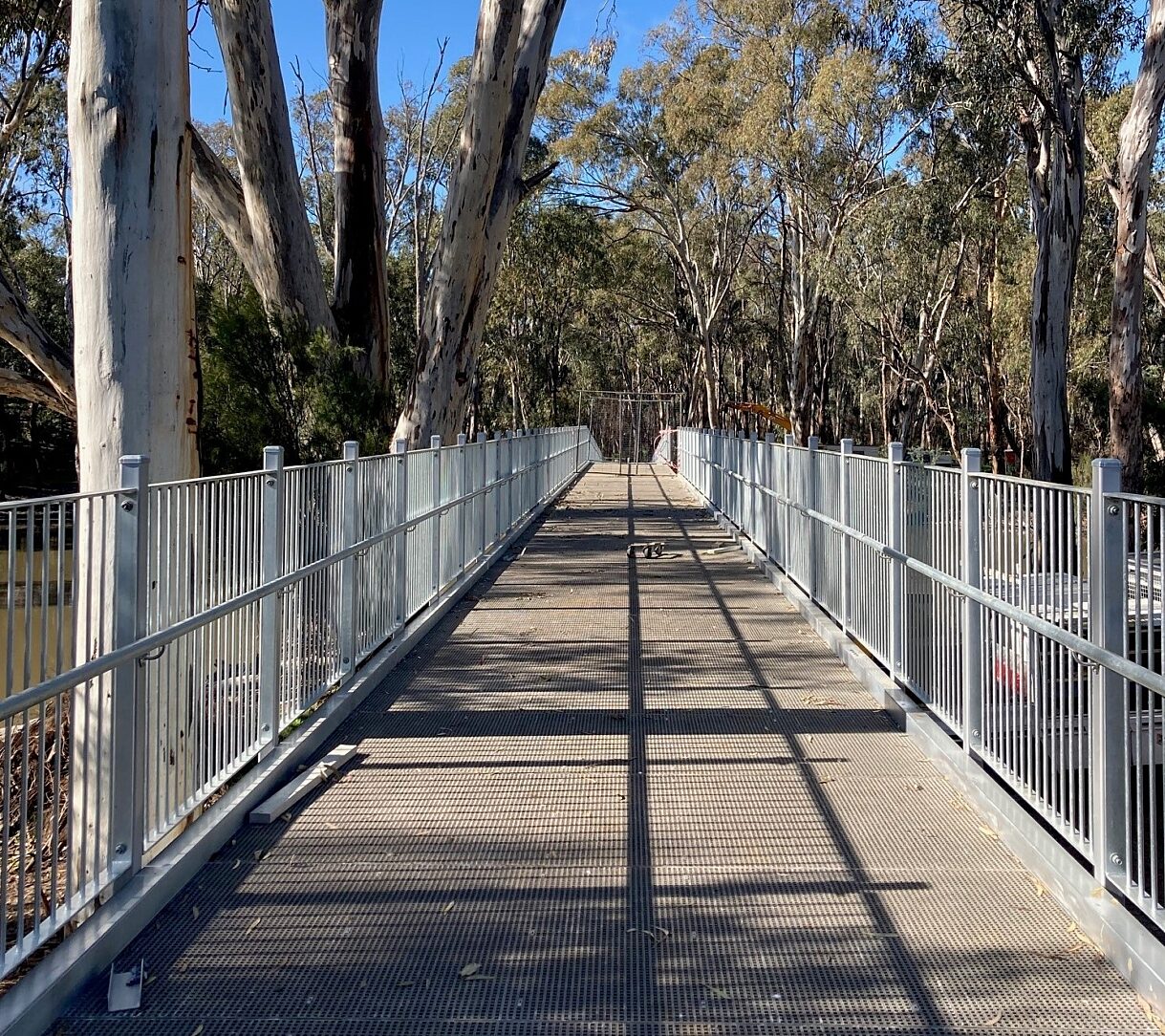 The Horseshoe Lagoon Bridge located near the Moama Wharf was an old timber bridge spanning approximately 115 metres long over the Murray River. Due to the weather damage inflicted over the past several years and recent engineering inspections, the existing bridge was classified unsafe and was not meeting weight load requirements.