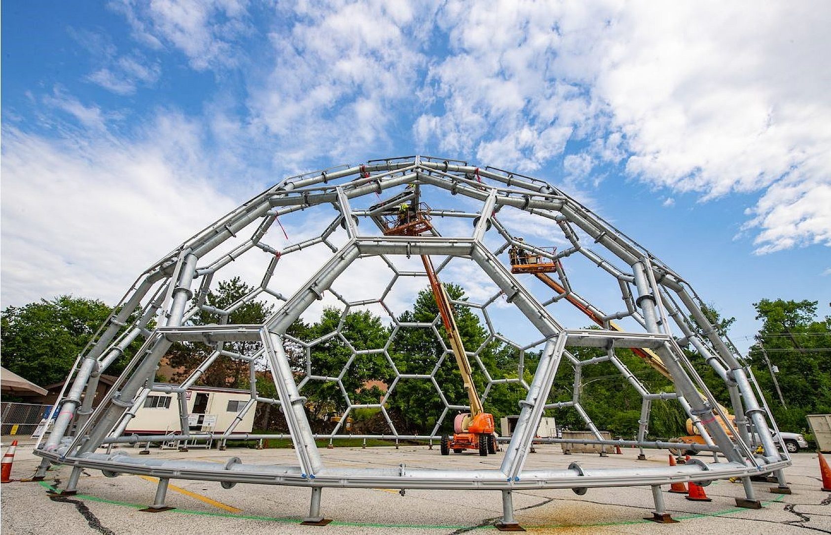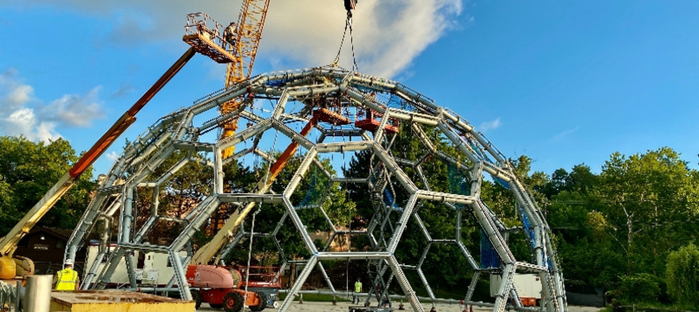 With full communication between Regency (General Contractor), J.A. McMahon (Fabricator), and the Galvanizer, the dome was completed a week before the due date. With the complexity of each precisely designed fabricated tub, communication was vital for venting and drain holes while ensuring it did not impede the dome's design. The largest crane in the state of Ohio lifted the 35 Tons, nearly 40 of 8” galvanized fabricated tubing connected into a hexagon pattern, and the aluminum channel was lifted into place. With the new look on the iconic geodesic dome overtop of The Rainforest, the Bornean orangutans can demonstrate their arboreal nature while climbing 40 feet above visitors.