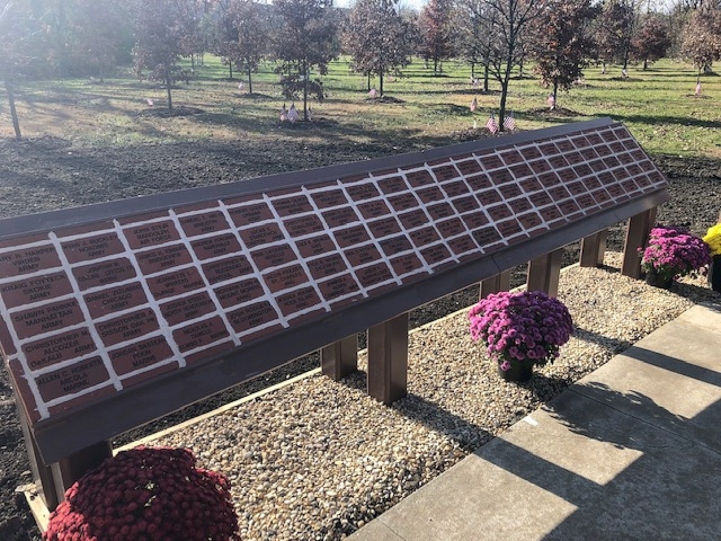 Steve Massey of the Illini State Park Foundation and David Raikes of the Laborers Local 393 worked for ten years to add to the memorial. Their idea was to have the names of the fallen, their branch of service and their Illinois hometown on individual bricks in a beautiful spot where loved ones could remember them.