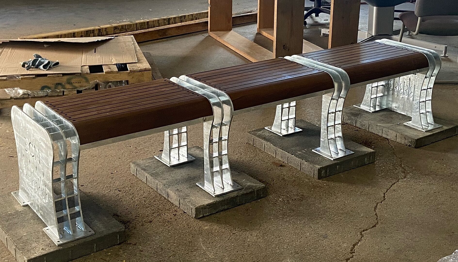The benches were hot-dip galvanized to provide a maintenance free pedestrian zone that will be enjoyed for years to come.