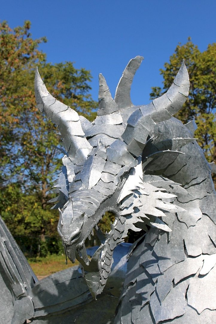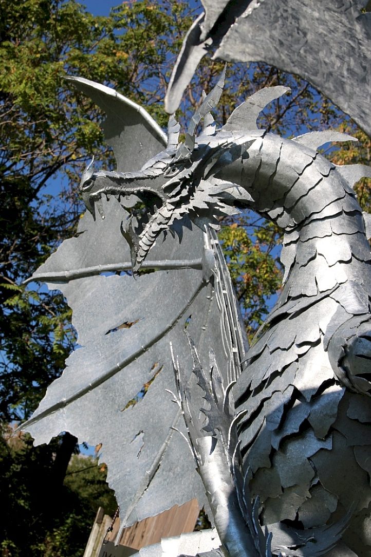 The artist, McIntyre said "This being my first sculptue, I am extremely proud of it and would like for it to be on display. Due to the natural elements, I was looking for a method to preserve and protect the life span of my Dragon sculpture. Galvanizing was the best solution!"