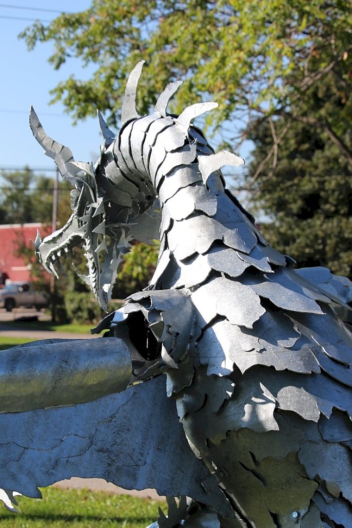 Trevor McIntyre has been a metal fabricator for the past 28 years. Imagine Metal Art, a company that specializes in metal structures, came to fruition three years ago. They specialize in anything from garden art, fire pits, to large sculptures. This Dragon sculpture was Trevor's first major art project. The vision for this Dragon was born from a pile of scrap metal in Trevor's garage. The idea of putting recycled scrap metal to use by making something unique and beautiful was just the start of all the other projects he has created.