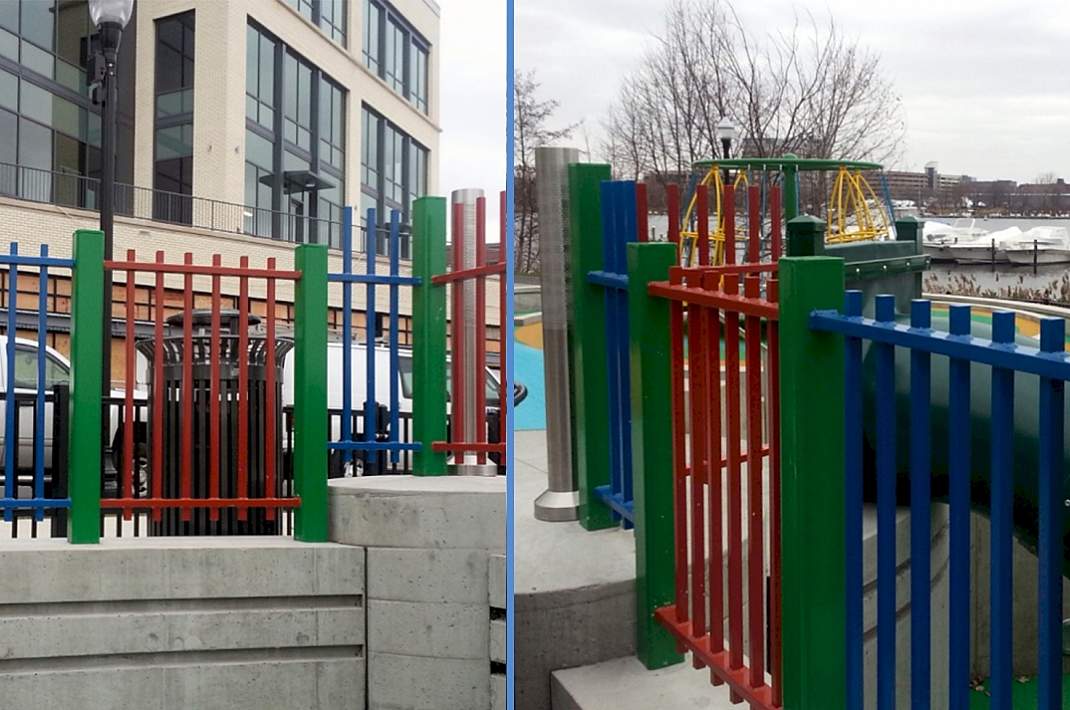 The galvanized railings will last for several decades. Kids will be kids, they will bang into the railing with sticks, bats and wheelchairs. Nothing looks worse than chipped paint, especially at a playground. The railings will survive midwestern winters. No need to close down the park to remove, replace, and re-do the railings. Even though the park was being planned for years, there is always a time crunch as projects near completion. The galvanizing was turned around in a few days giving the fabricator time to do his finishing work and install on time.