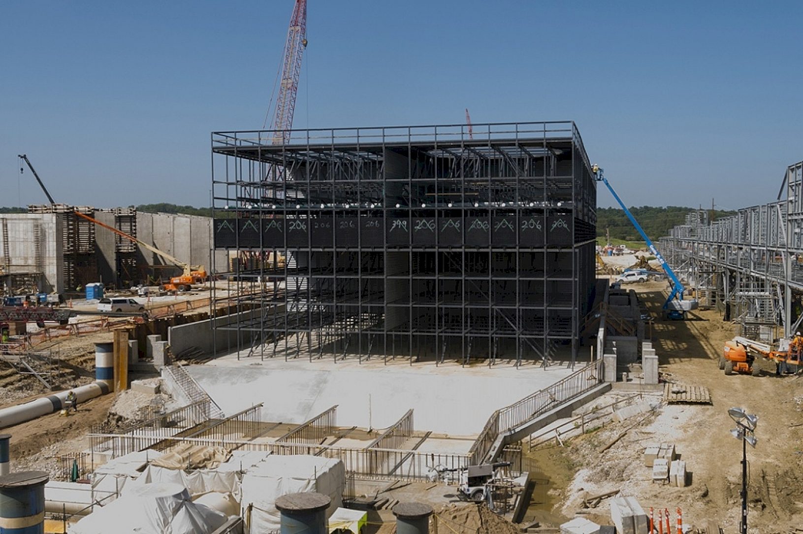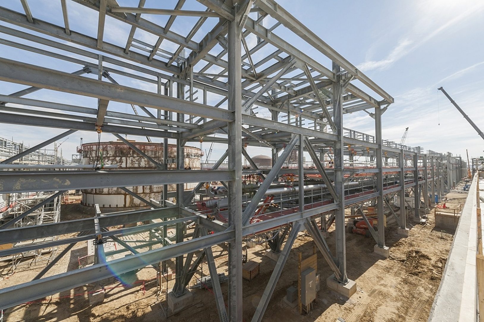 Some unique design challenges with this project required careful coordination between the galvanizer and fabricator. The bracing plates were bolted on, and had to be unbolted for galvanizing, and then re-attached after to the same columns, as the sizes varied slightly. Reconnecting the pieces correctly was critical for the erectors onsite, and any issues would slow the construction schedule. The fabricators and various galvanizing facilities worked diligently to ensure the massive job was seamless.