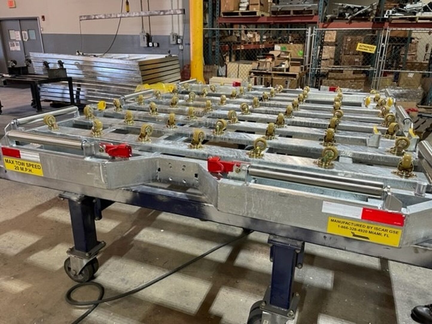 The variety of equipment Iscar GSE manufactures helps improve the efficiency and safety for cargo handling and transportation. This includes the slave rack, which is used for transferring Unit Load Devices (ULDs), or other large cargo items weighing up to 15,000 pounds. The ULD containers themselves are lightweight and, without proper handling, the containers and product inside are susceptible to damage. To reduce costly replacement or repair fees, the slave rack is used to provide a reliable, easy, safe and smooth method of transferring these items.