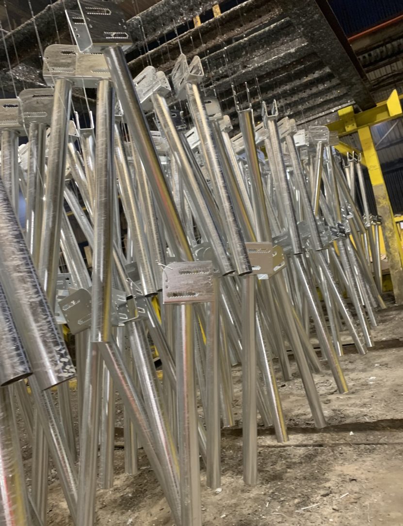 The fabricator collaborated closely with the galvanizer to deliver approximately 2,400 tons of hot-dip galvanized structural steel for the racking system. Given the project’s expansive footprint and accelerated installation timeline, material flow required exceptional coordination. More than 120 truckloads of steel were galvanized, inspected, and dispatched directly to the jobsite in carefully sequenced deliveries that matched field-installation progress across the 1,400-acre site. A key objective of the Jackson County Solar Project was to keep Michigan dollars within the state by sourcing as much of the work as possible from local suppliers. Utilizing a Michigan-based galvanizer reinforced this commitment by supporting regional industry, reducing transportation distances, and contributing to the state’s economic vitality. This local partnership ensured that critical processing remained close to the project site, strengthening both efficiency and community investment. Hot-dip galvanizing was selected for its proven ability to protect steel components subjected to Michigan’s challenging conditions, including moisture-rich soils, freeze-thaw cycles, and long winter exposure. The metallurgically bonded zinc-iron alloy layers provide robust abrasion resistance during handling and installation while ensuring decades of maintenance-free corrosion protection. Because the solar posts and racking elements varied in size and configuration, the galvanizer maintained strict attention to venting, draining, and processing sequence to ensure uniform coating quality across thousands of pieces. This consistency was essential for long-term performance as well as seamless field assembly. The Jackson County Solar Project demonstrates the galvanizer’s capability to support utility-scale renewable-energy infrastructure through reliable processing, disciplined logistics, and technical expertise. The result is a corrosion-resistant steel foundation designed for a multi-decade service life- strengthening both Michigan’s renewable-energy future and the local economy that helped build it.