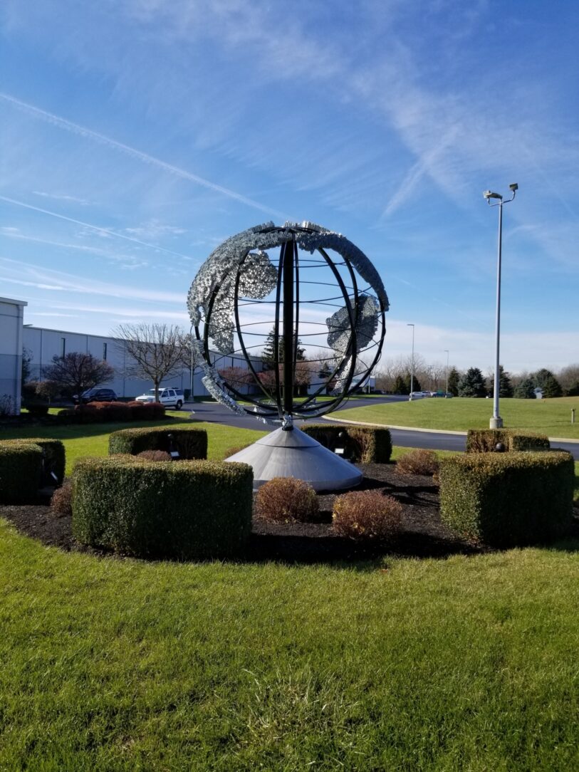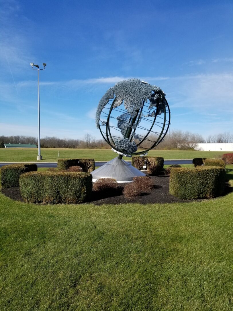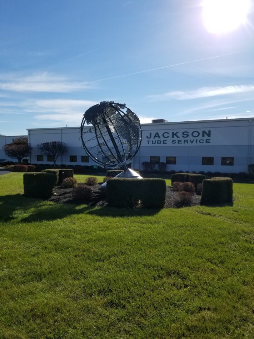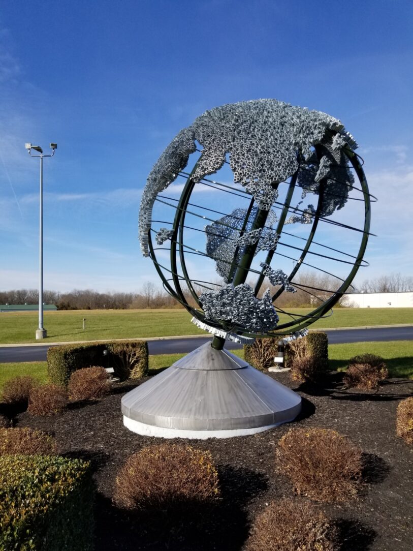 Strip and galvanize the World Globe out front of Jackson Tube Services in Piqua, Ohio. Nearly all the tubing used in the construction came from Jackson Tube Service, it was fabricated in 1996 by Indian Creek Fabricators in Tipp City, Ohio.