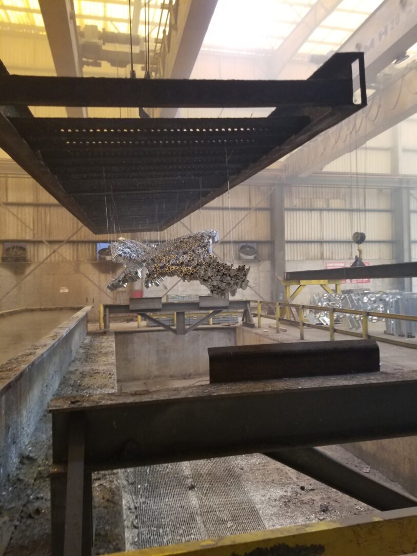 This galvanizing project was used to freshen up the sculpture out front of their office. Jackson Tube Service pledge is building for the future which is to communicate quality, durability and longevity. The sculpture consists of hundreds of pieces steel tubing.