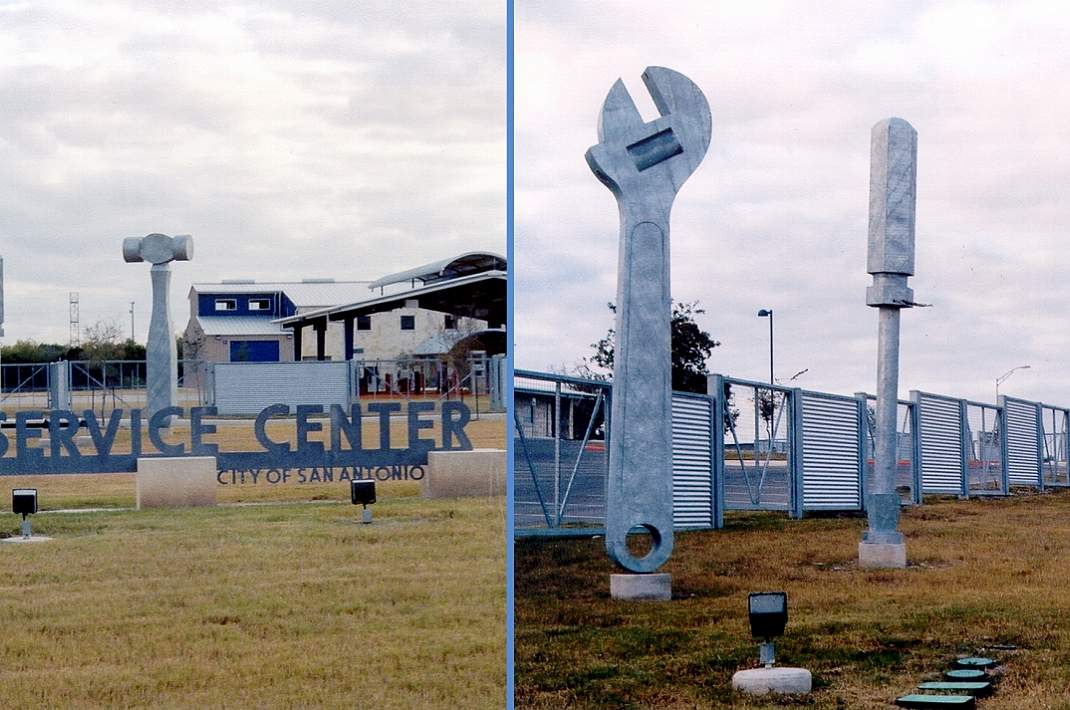 Sign structure on sculpture, and all parts.