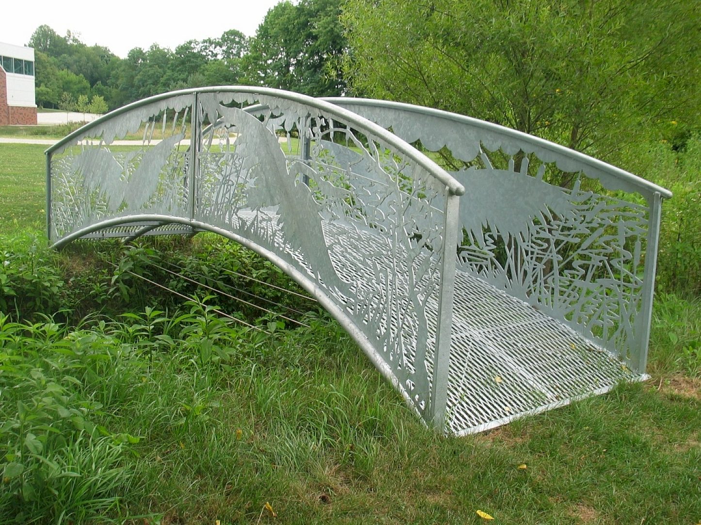 The artist also wanted to give a nod to sustainability and local involvement. He used recycled materials, local suppliers, and volunteers to aid in the construction. The galvanizer was proud to supply the galvanizing at no charge. Artistically, a close inspection shows the intricate depiction of cattails and herons indigenous to the area set in the Cuyahogo Valley National Park. The laser cut sheet metal posed concerns about the final appearance due to warpage and handling damage. Careful handling at the galvanizing plant protected the intricate designs, and the final appearance was just as Comunale had anticipated. Janes Bridge is a fitting tribute to a beloved cousin for the children of the Old Trail School to enjoy and remember for generations.