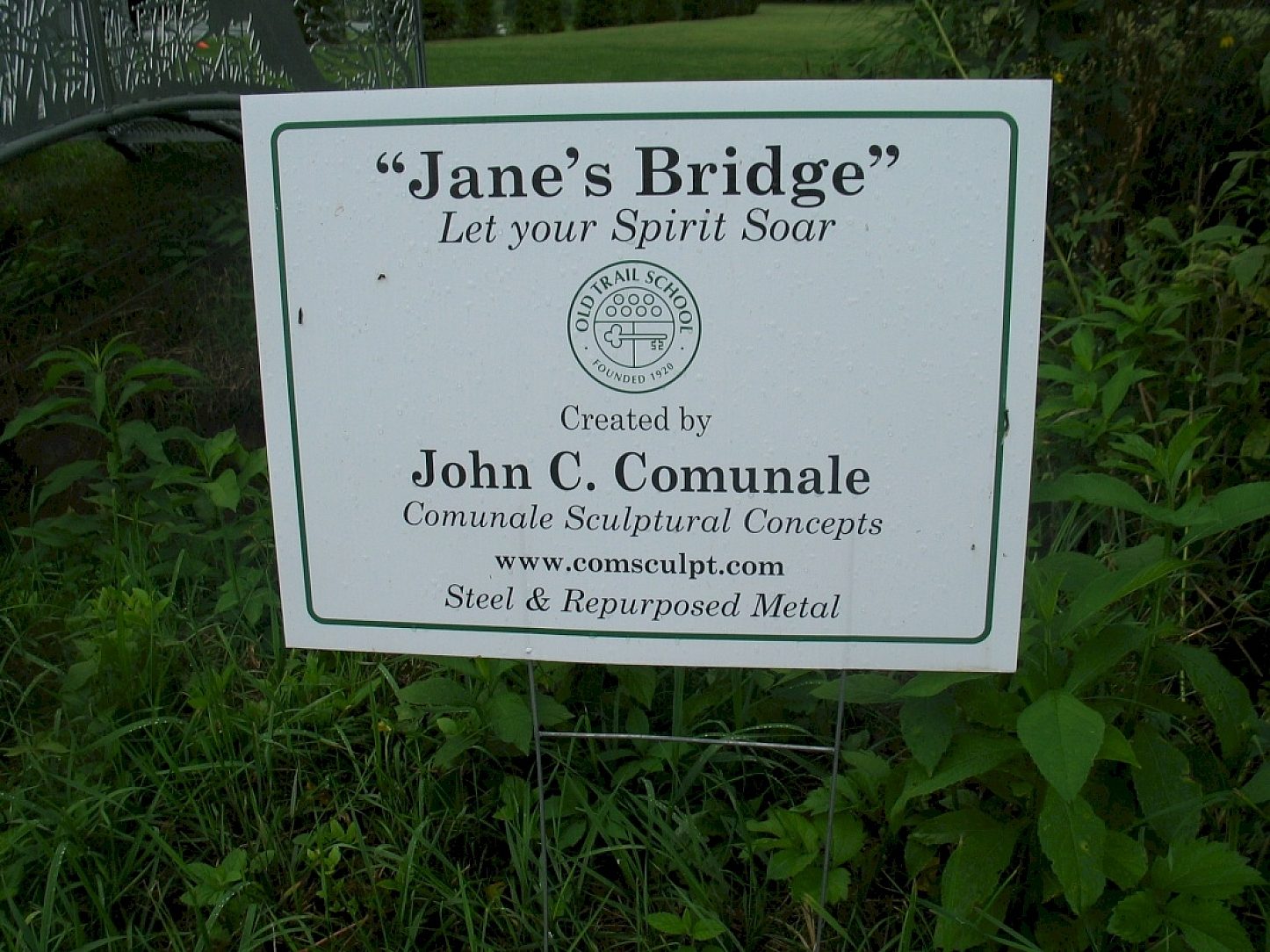 John Comunale is the owner and artist of Comunale Sculptural Concepts. The construction of Janes Bridge was his labor of love to memorialize his recently deceased cousin who attended The Old Trail School in Bath, Ohio. Comunale said he wanted the bridge to be beautiful and strong like his memory of Jane.