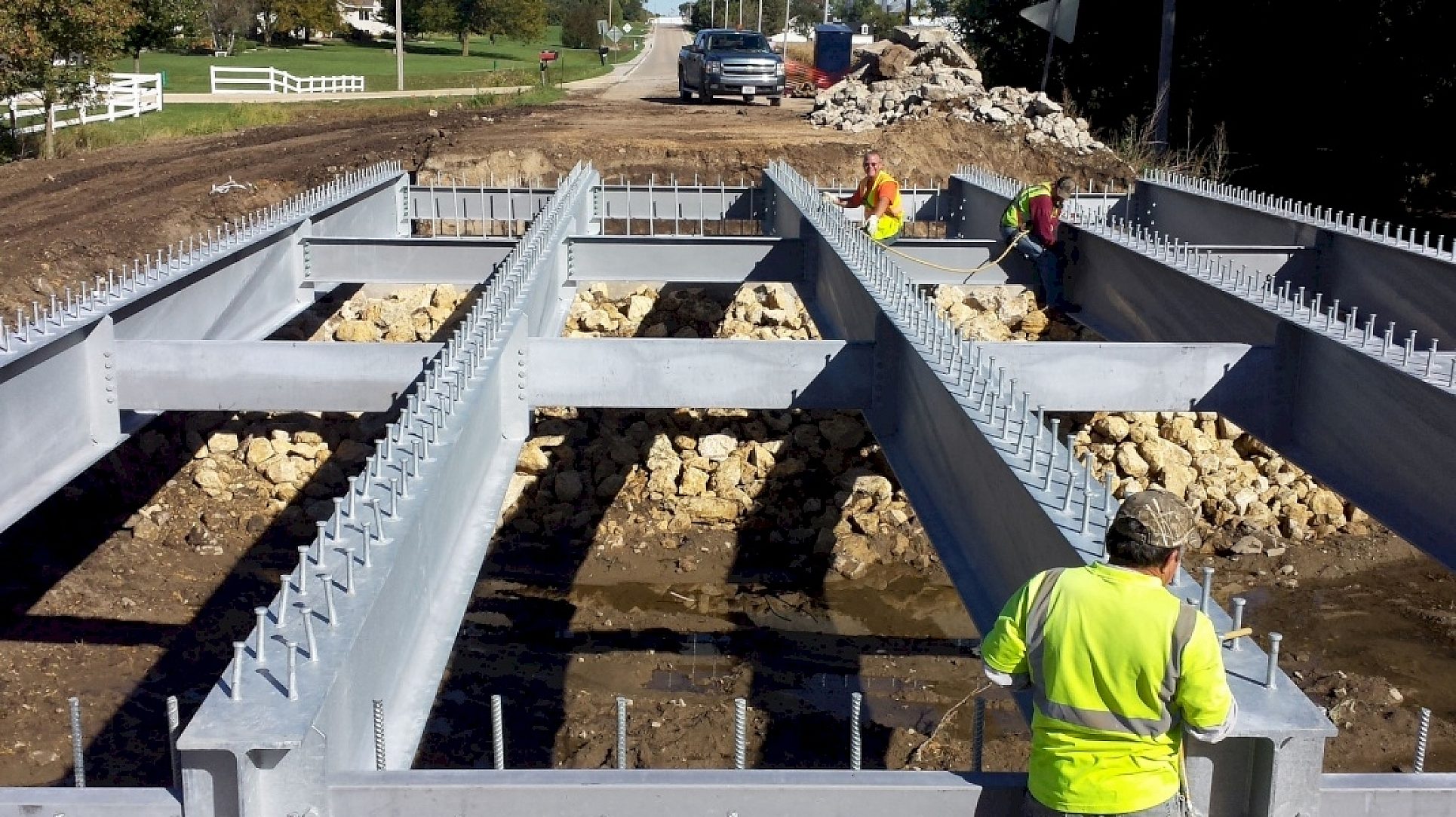 Galvanized steel beams and rebar are key components in this design. It all goes back to economics, Keierleber says. It will dictate everything we do. It goes back to cost comparisons and being worried about cost savings in the long run instead of the short term. Beyond research, this project is an enhancement to the community because it removes a barrier to commerce and mobility for county residents. Typically contractors are hired for this job, but Keierleber wanted his crews to be intimately familiar with the construction of this bridge, so it also provided jobs and income for local county crews.