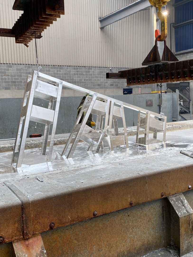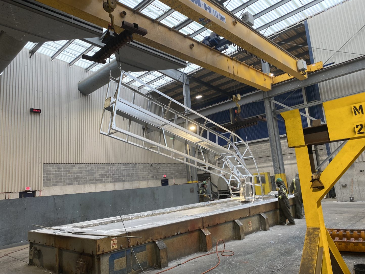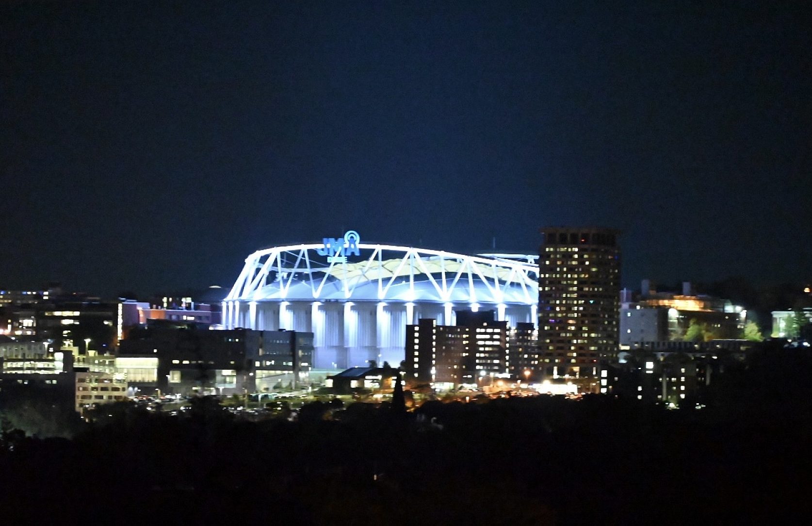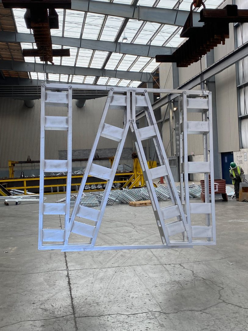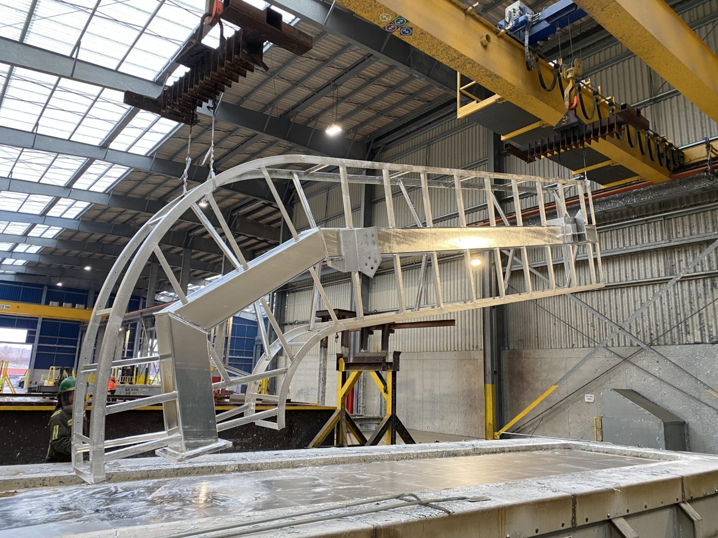 Four individual signs of the JMA Wireless logo were fabricated for this project. All the signs benefit from hot-dip galvanizing for corrosion protection then had a “skin” added to them made of stainless plates that were painted in the JMA logo color pallet. The signs are broken down by location on the dome. The crown truss sign, the largest of the four is mounted on the west side of the building, attached to the crown truss. The North sign was mounted on the north wall of the building and required a 56’ long tube truss to support it. Made in two assemblies, the tube truss was mounted between existing concrete precast columns that support the original structure. The southeast and southwest signs are identical to each other and placed on opposite corners of the building.