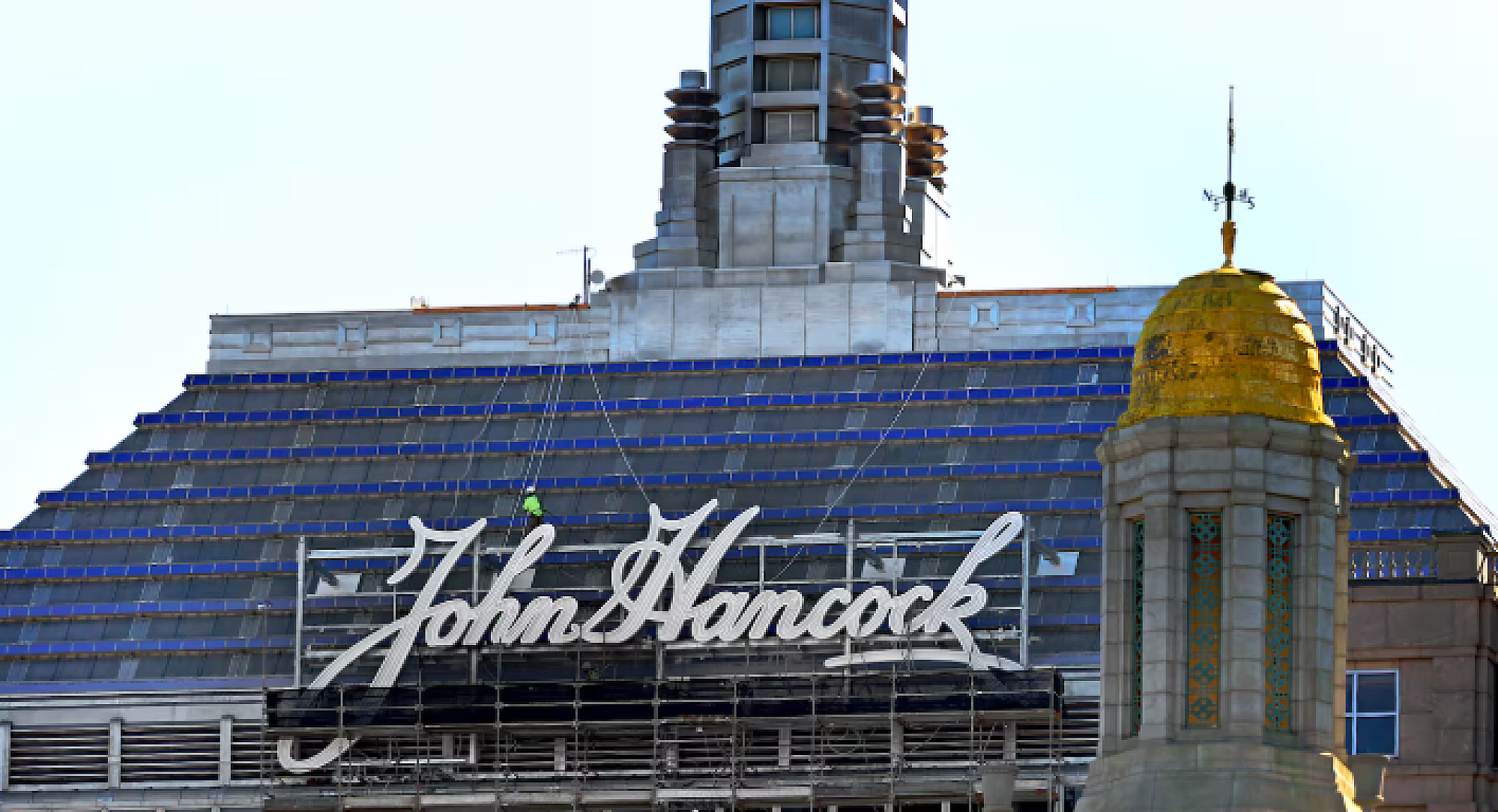 The iconic John Hancock sign, a fixture at Fenway Park for over 30 years, has been relocated to a striking new position atop the John Hancock headquarters at 200 Berkeley Street in Boston. Following the conclusion of John Hancock's partnership with the Red Sox in 2024, the 70-foot-long by 23-foot-tall sign now commands attention from its prominent perch—27 stories above the city—on the building’s stepped pyramid roof. Positioned just below the renowned weather beacon, the sign faces north, offering a distinctive presence along the Charles River and reinforcing its connection to the urban fabric.