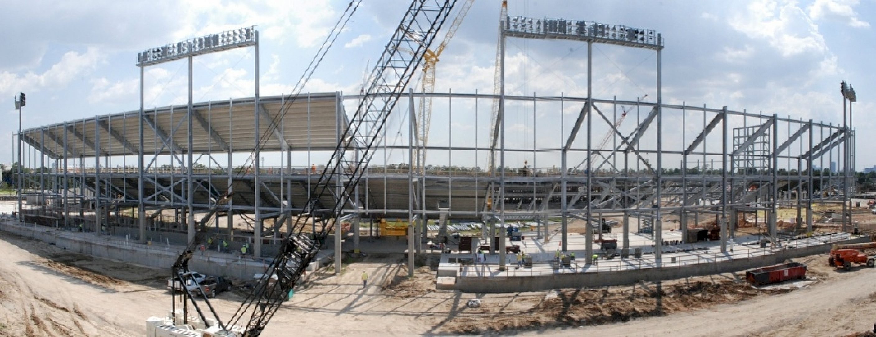 This gorgeous stadium with the skyline of downtown Houston as a backdrop will provide a safe spectator environment, tie the city in with the university and have a low maintenance, corrosion free, long life expectancy due to the hot-dip galvanized coatings.