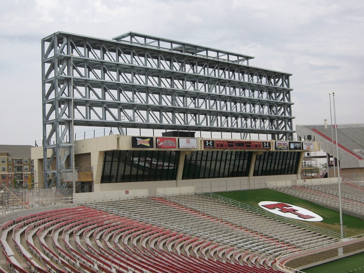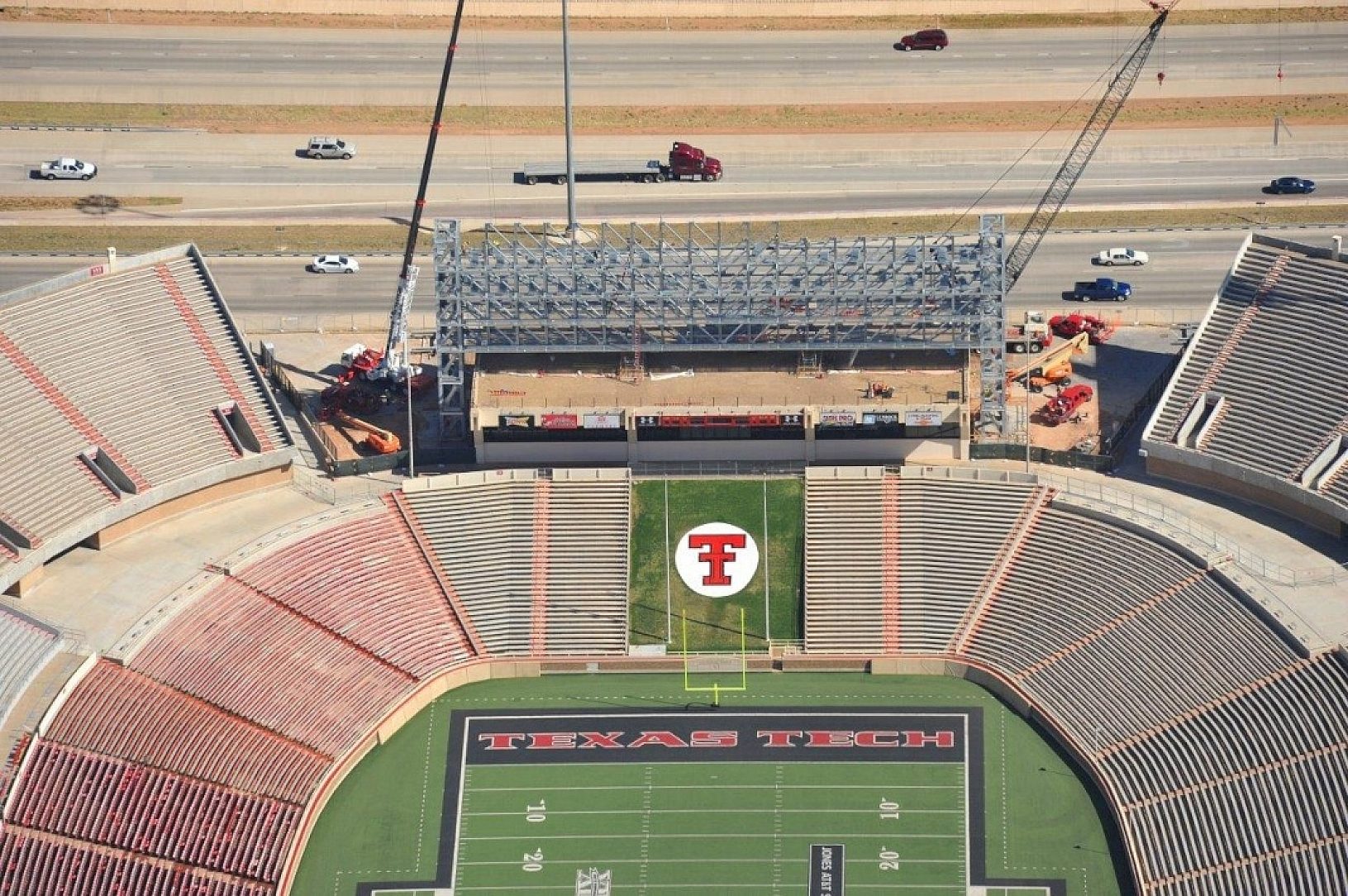 The scoreboard at Jones AT&T Stadium was due for a facelift so the Texas Tech Board of Regents decided to construct a super structure at the north end zone of the field. The structure would house a state of the art video board and sound system that would rank as the largest in the Big 12 conference.