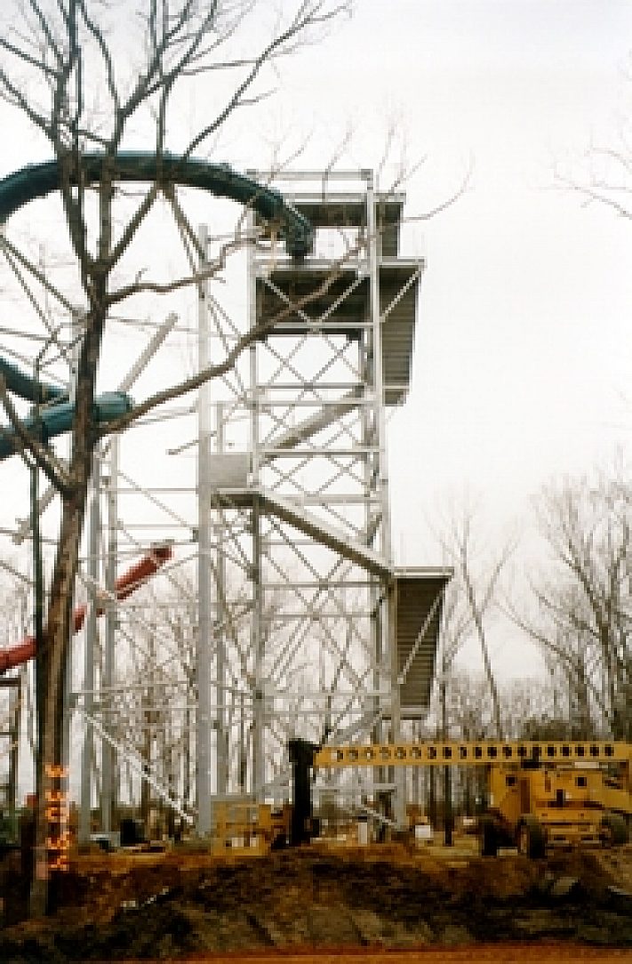 Stairs, handrails, platforms, columns, all tower steel and support arms for fiberglass slides.