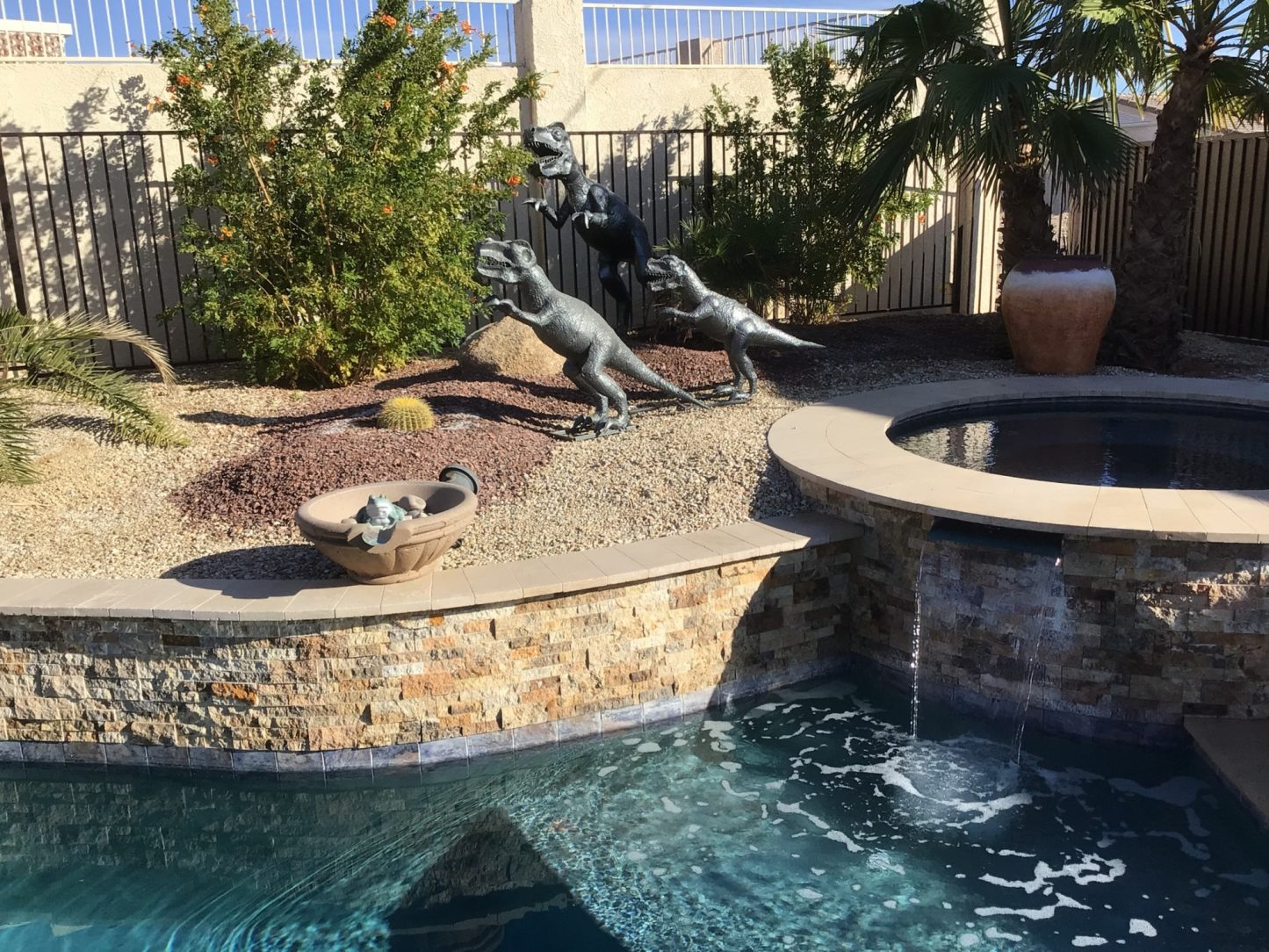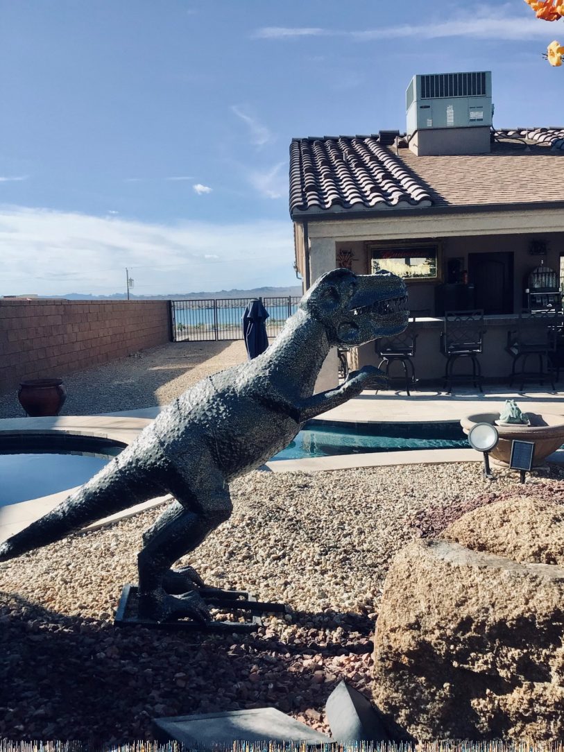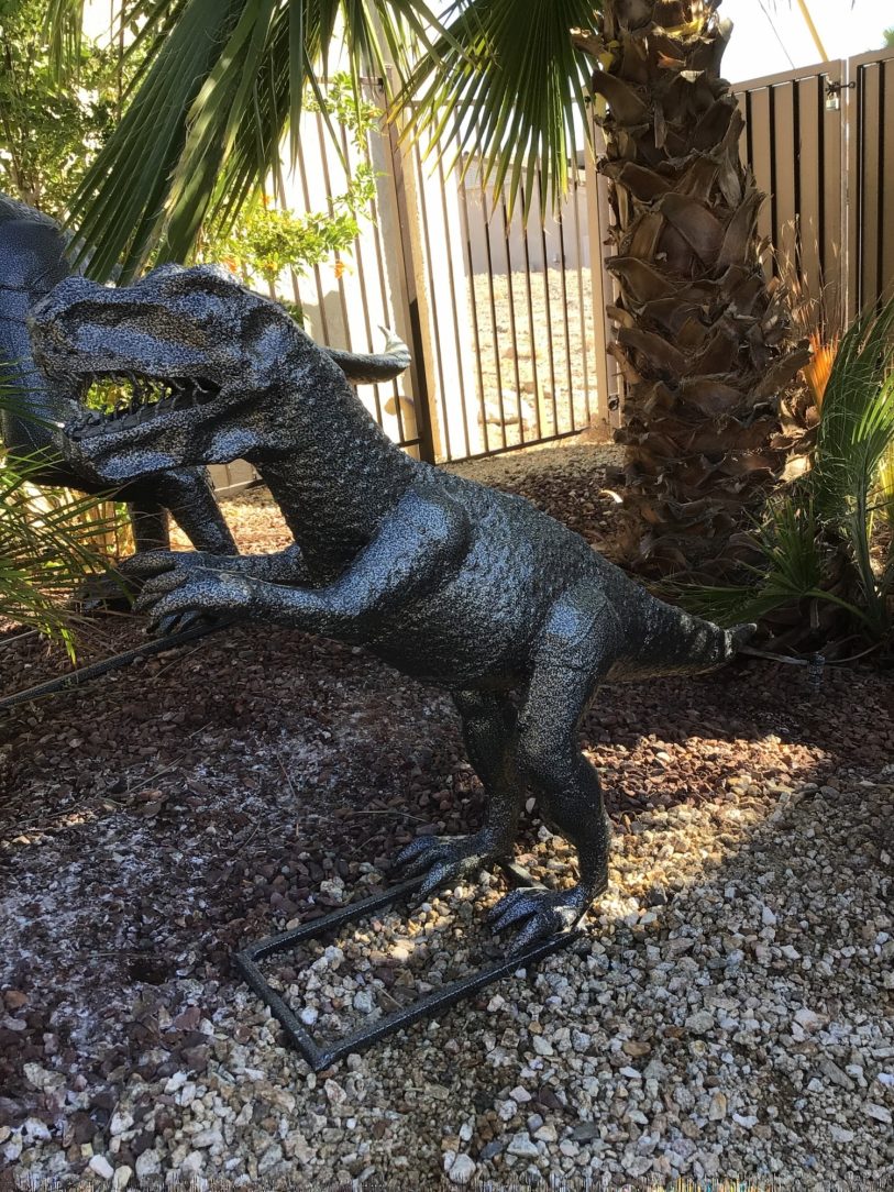 Although dinosaurs themselves may have been extinct for hundreds of years, these hot-dip galvanized figures will be admired for years to come. Robert Vogel knew just the way to add the final touch to the art he purchased to add to the décor in his beautiful lakeside backyard space. Robert had purchased the raptors knowing he could add life back into them with just a few added layers.