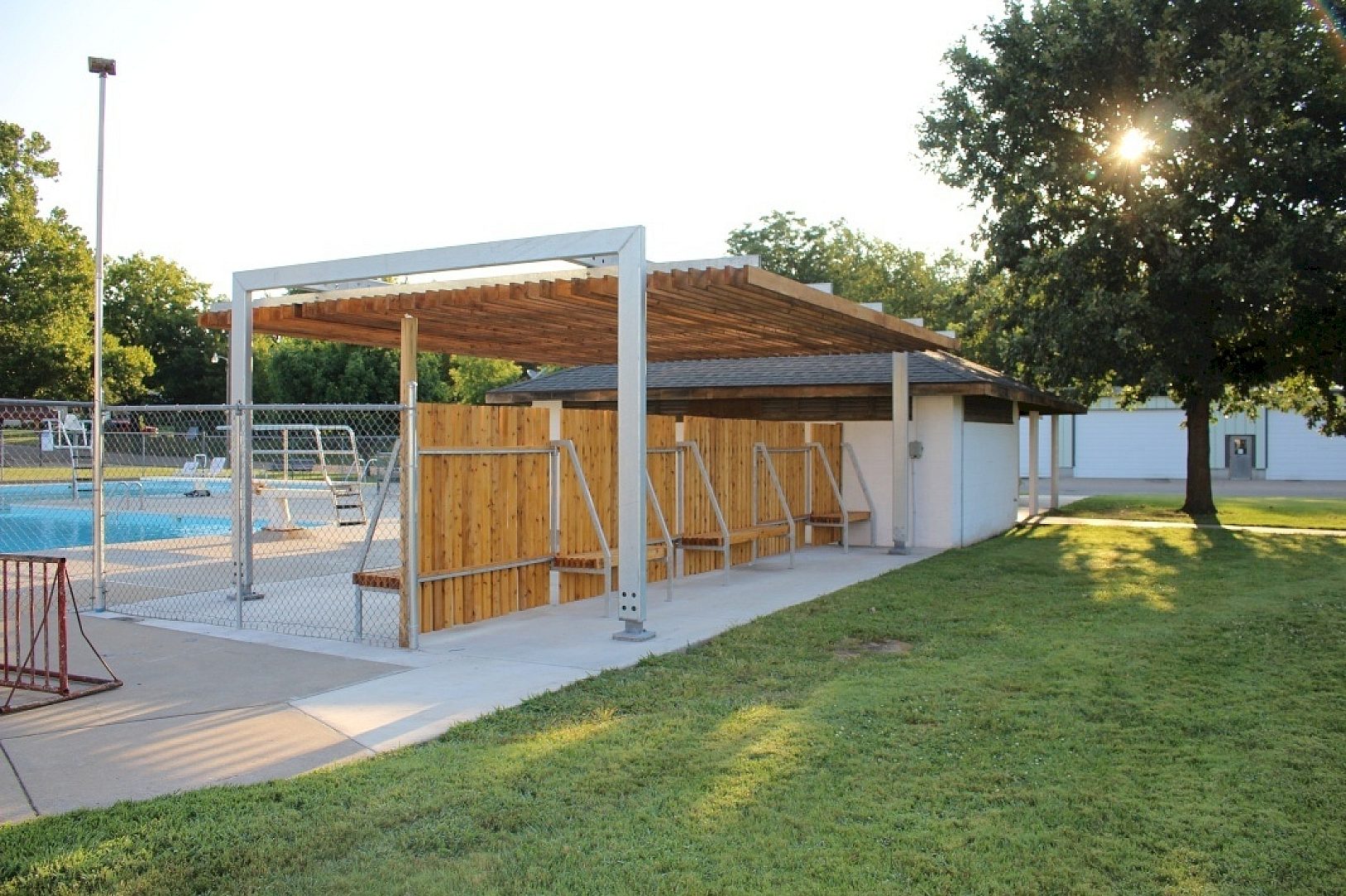 In the quiet, small town of Alma, Kansas, there is a strong sense of community. People take time to invest in the future of the youth of their community. A favorite pastime of retirees in the community is to gather at the city park and pool to observe the children of the future. They talk, reminisce, and listen to the laughter of the children at play. A convenient forum for this favorite pastime was needed. There was limited shade and seating was at a minimum.