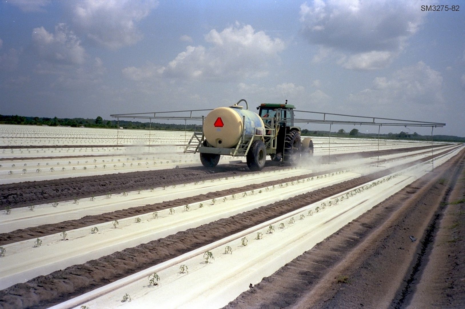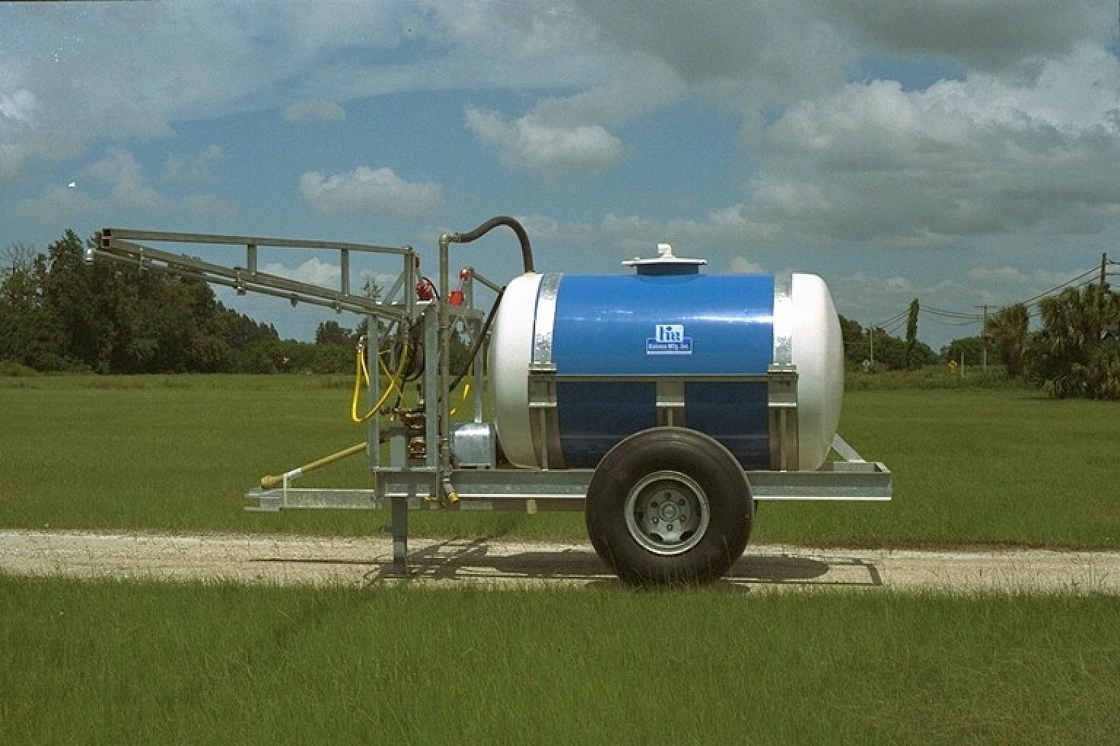 Sprayer chassis, gantry-boom support structure, and wheels.