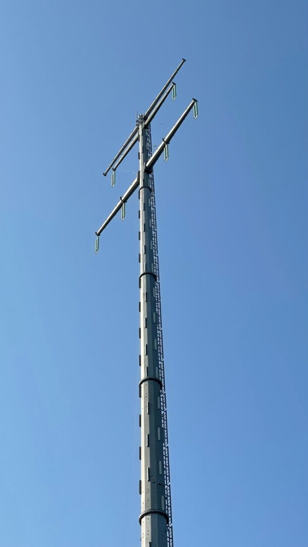 The tall and slender geometry of the poles posed challenges for the project team. They were delivered in multiple sections because they were so long. All the poles themselves could have their own story. The A-sections specifically posed issues because they were too large for any hot-dip galvanizing kettle in the United States. For these items, the poles sections were progressively dipped before welding to the remaining part. This required grinding off a portion of the galvanized finish and utilizing metallizing to achieve corrosion protection on the section that could not be hot-dip galvanized.