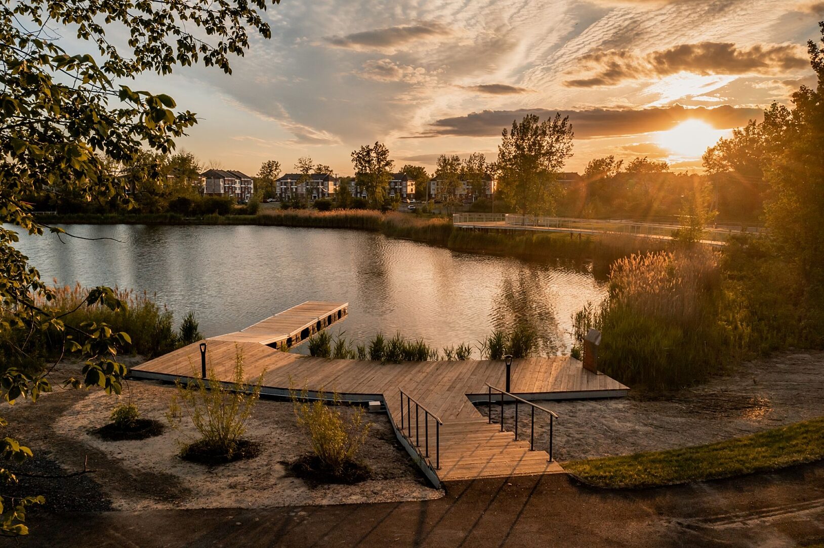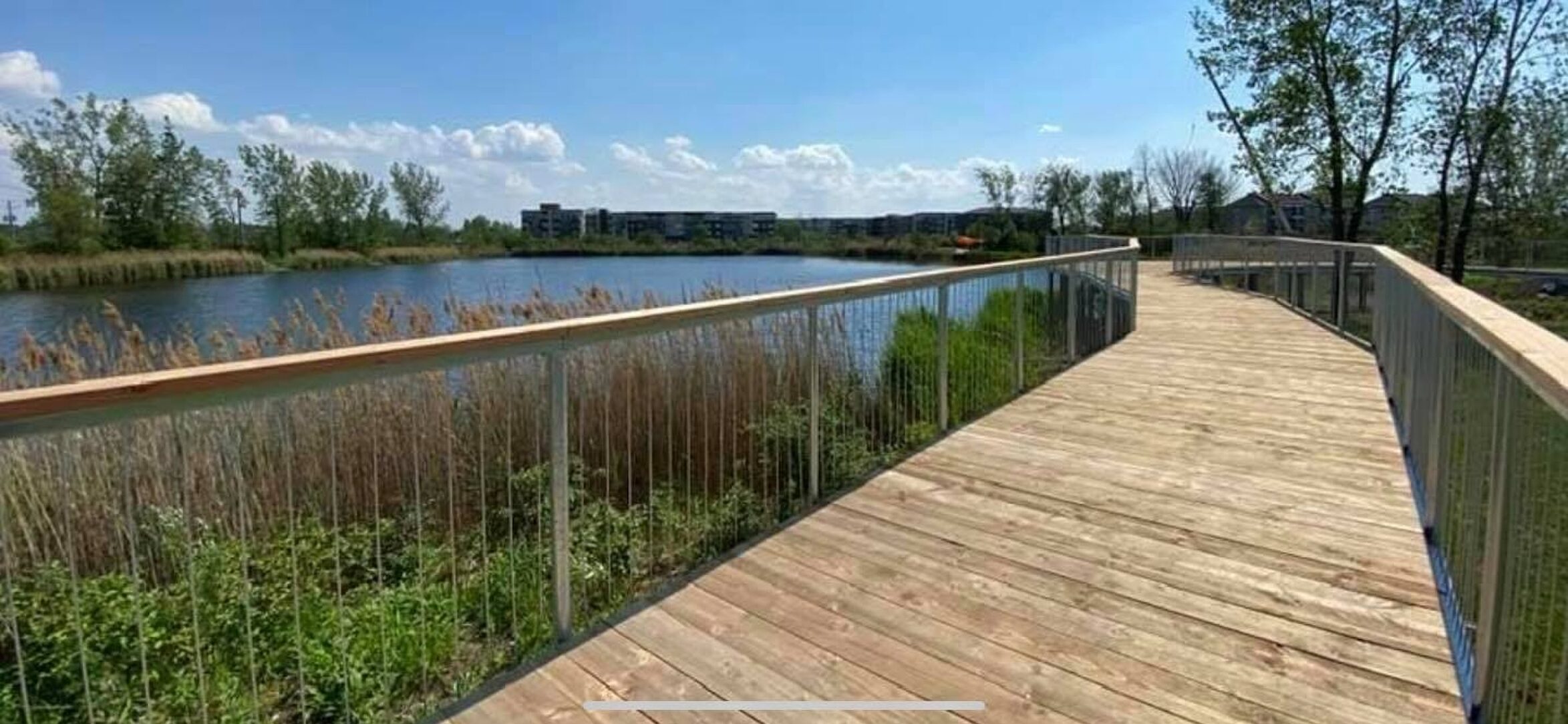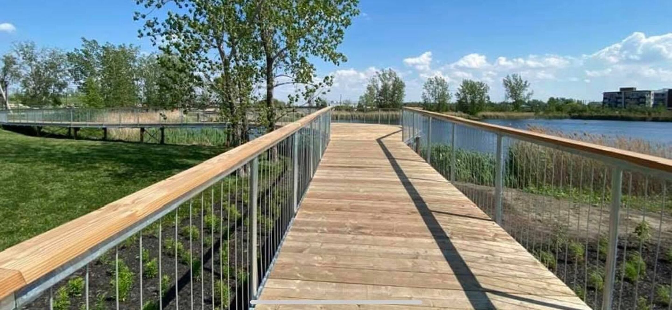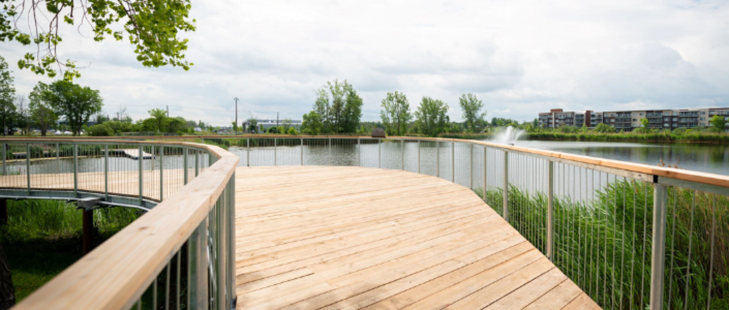 To maximize the experience, elevated parts of the path extend over the surrounding marshes and the lake itself. Additional features include a small beach area and a fishing dock. As has become common practice in Canada these pathways are expected to be kept clear of snow and ice so they can be enjoyed year-round.