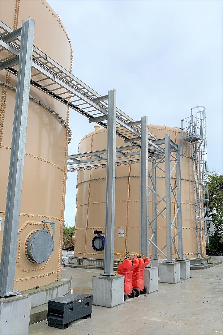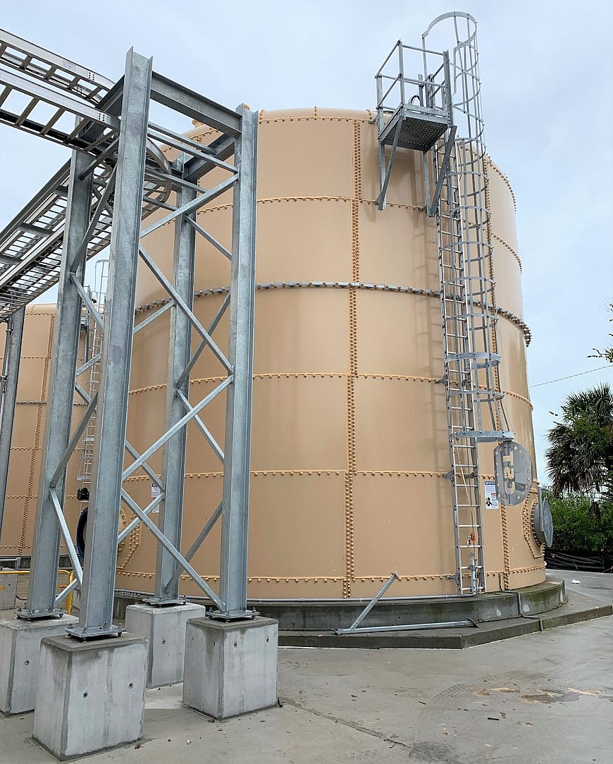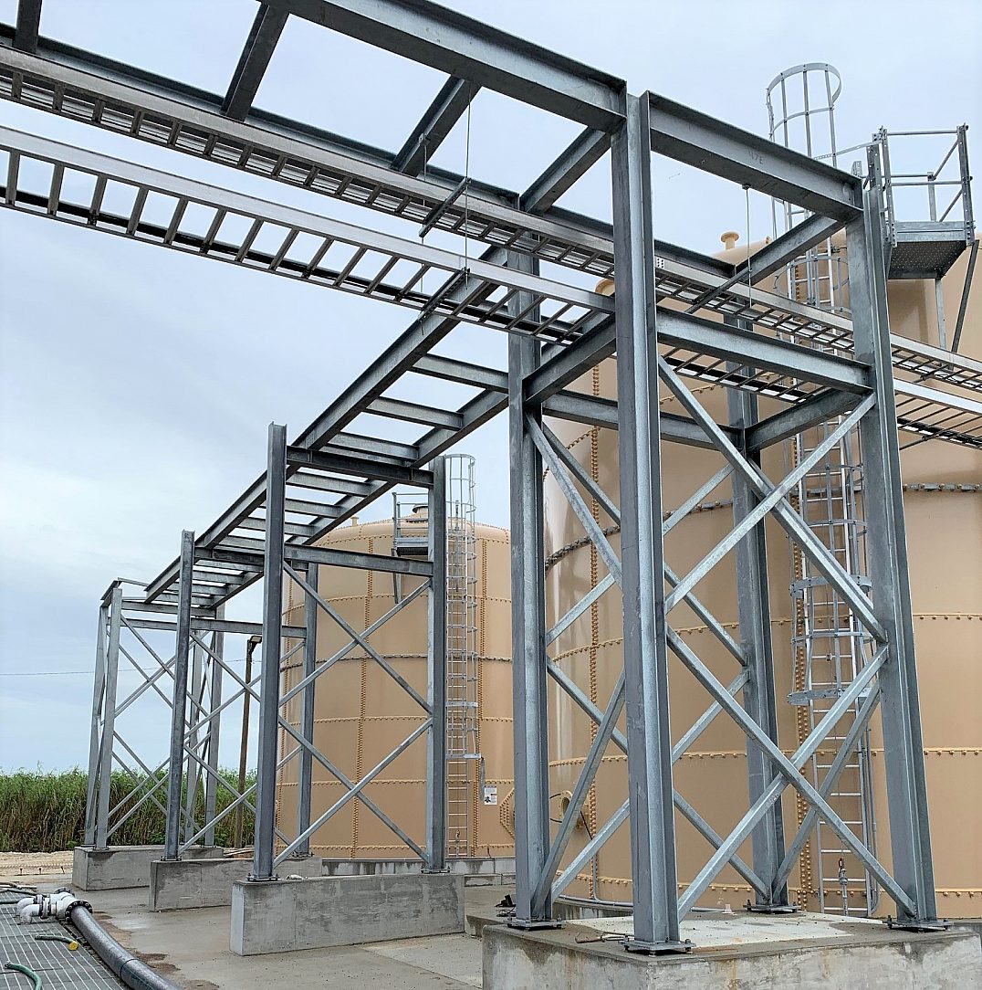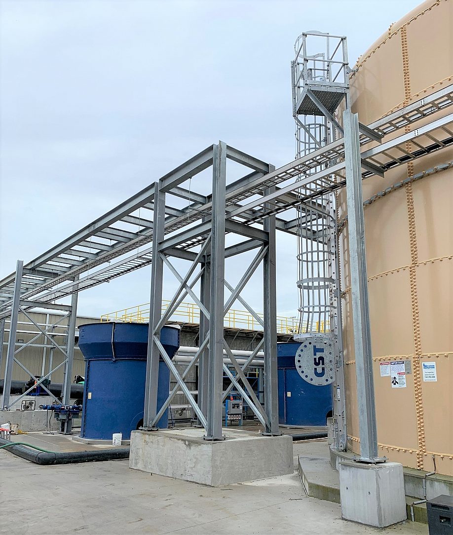 The entire facility at Lake Apopka was built using approximately 70 tons of galvanized steel, consisting of many structural beams and beam assemblies, frames, platforms, stairs, ladders and catwalks. The decision to specify hot-dip galvanizing was simple. This is a long-term project sitting in the middle of a highly corrosive environment. Corrosion protection was the highest priority when choosing a coating type. Donald Luke, COO at Phosphorus Free Water Solutions, who has an extensive history in the water treatment business, said “the environment at Lake Apopka is very similar to a marine environment, which makes the steel very susceptible to corrosion.”