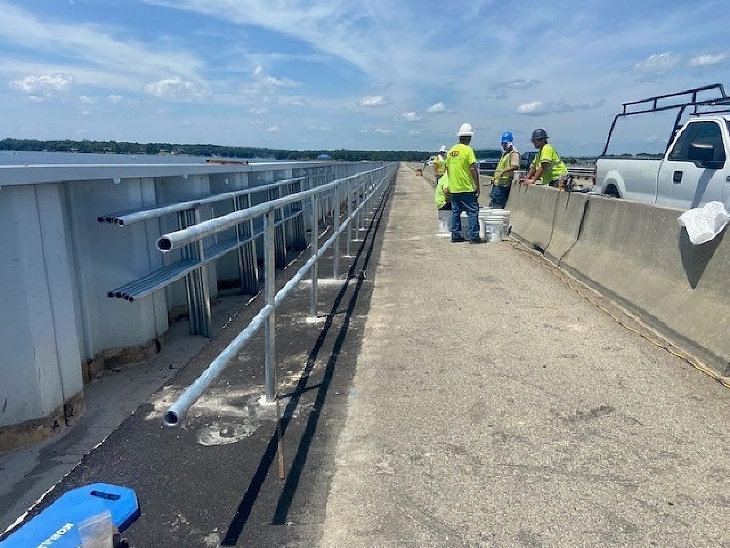 In addition to requiring a highly corrosion resistant coating due to the marine climate and high humidity, the project also required a swift response and completion time. Hot-dip galvanizing was the most cost-efficient option and provided a quick completion time as well as the longest life span for the cost. Another benefit of galvanizing was the protection from high and low temperature variances. With the elevation of the dam and wide-open spaces, the high winds provided severe low temperatures in the winter while the South Carolina heat kept these rails at a high temperature in the summertime but with the protection hot-dip galvanizing provided, no problems were to be expected.
