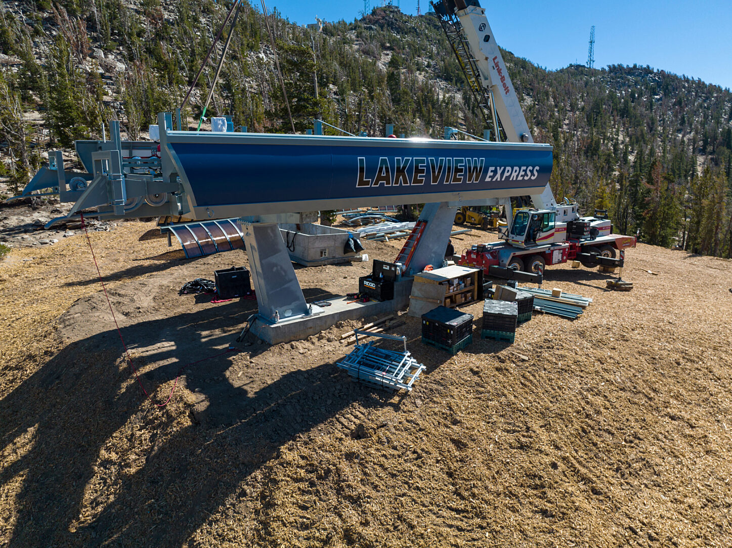 The lift and line towers were fabricated by Leitner-Poma of America in Grand Junction, Colorado. Leitner utilized hot-dip galvanized steel for the line towers, rocker arms, catwalks, and rails that make up the new Lakeview Express lift. All parts above are galvanized externally and internally due to the extremely harsh environment of subzero temperatures, constant contact with snow, rain, ice, and winds blowing over eighty miles an hour at the summit.