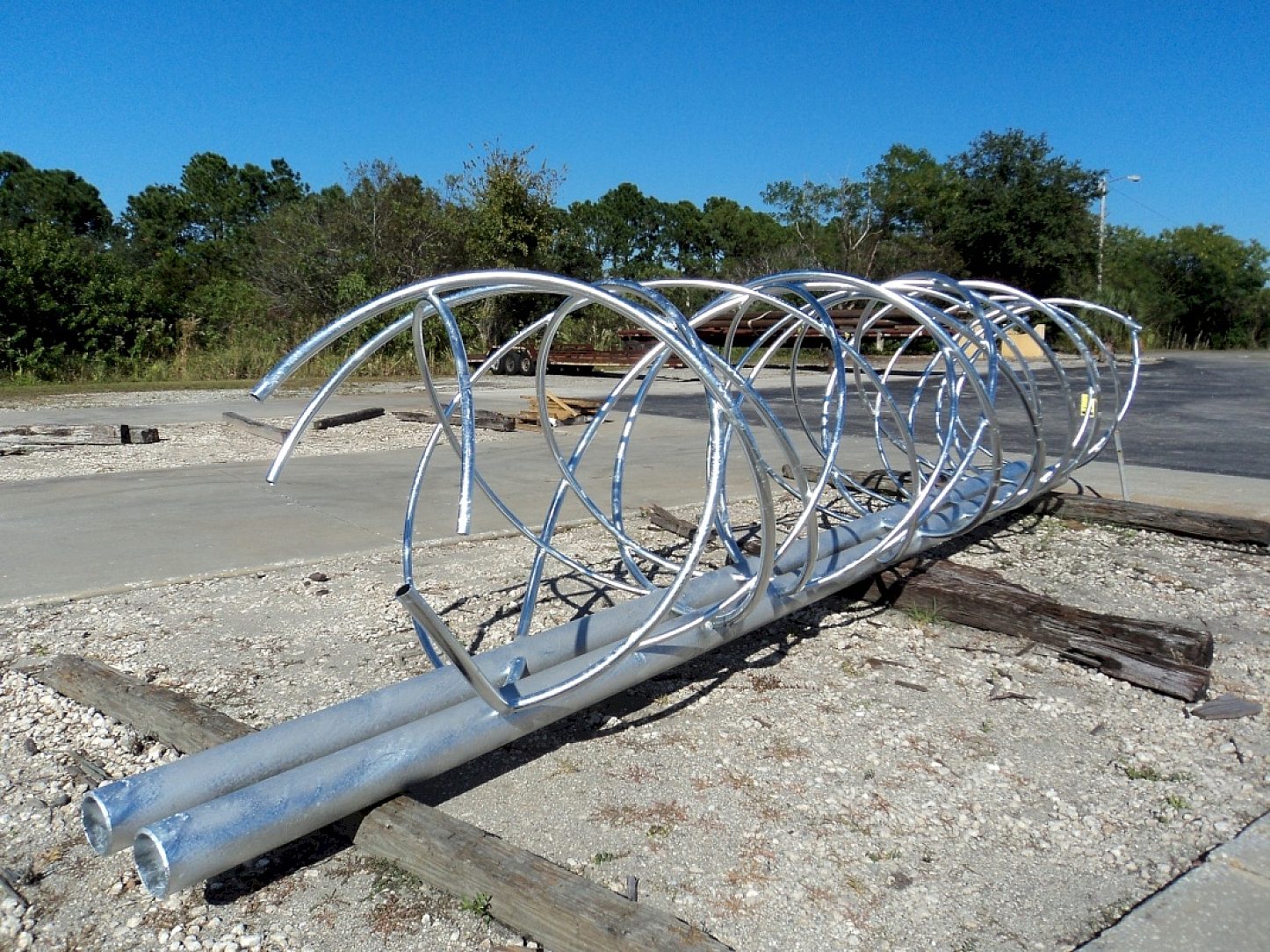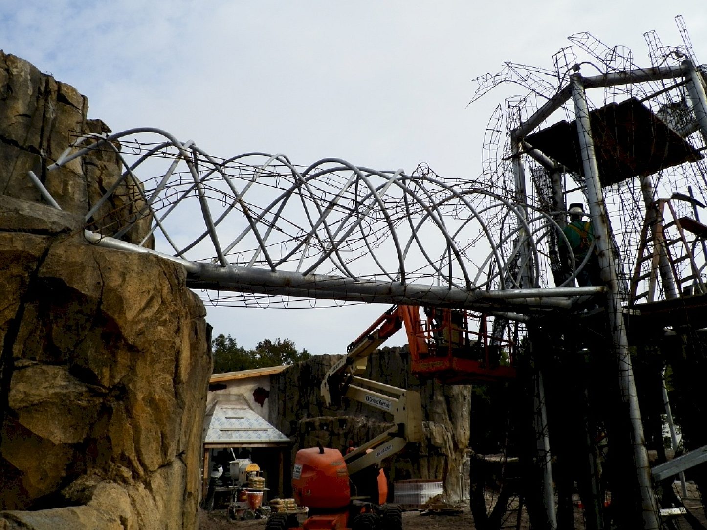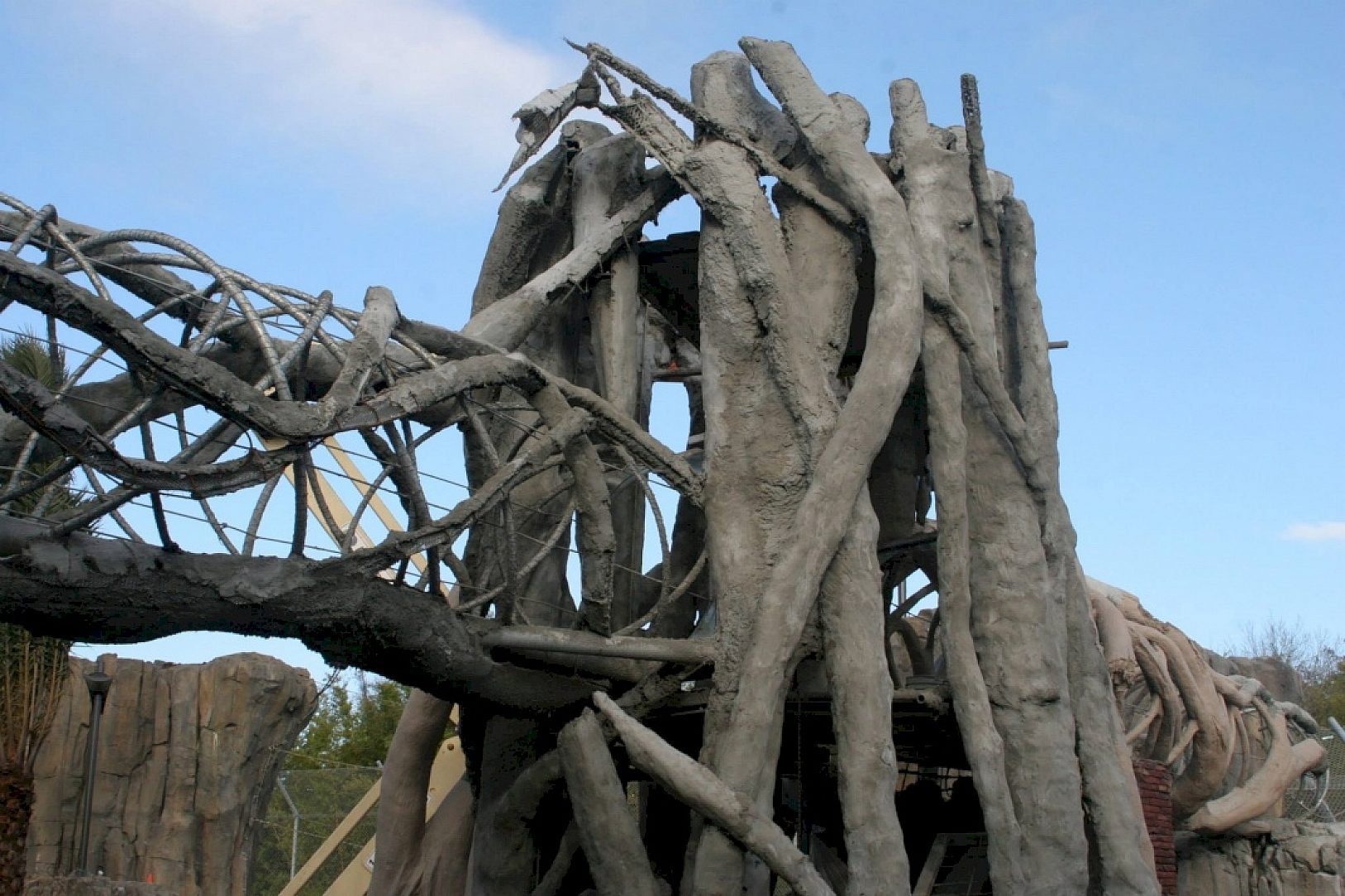 The tiger exhibit contains two walkways that allow the tigers to travel through and over the courtyard in impressive style. These "tunnels" were fabricated with a maze of tubing and pipe intertwined. They would eventually be covered in a concrete type substance, shaped, and painted to appear as a strangler fig. However, the amount of hollow area, and potential for trapped air and fluids made them very difficult pieces to galvanize. Jacksonville Steel Products worked with the galvanizer on determining exactly how the pieces would be processed and where proper venting and drainage holes should be placed in order to avoid hazardous explosions or floating, which would create quality issues in the coating. This attraction was to house a pair of rare, endangered Sumatran tigers and three endangered Malayan tigers. This system of towers and walkways was designed to give the animals a level of choice and freedom that most captive animals never get to experience. The Jacksonville Zoo has not had its own tigers in over 20 years. This exhibit is part of a $9.5 million expansion.