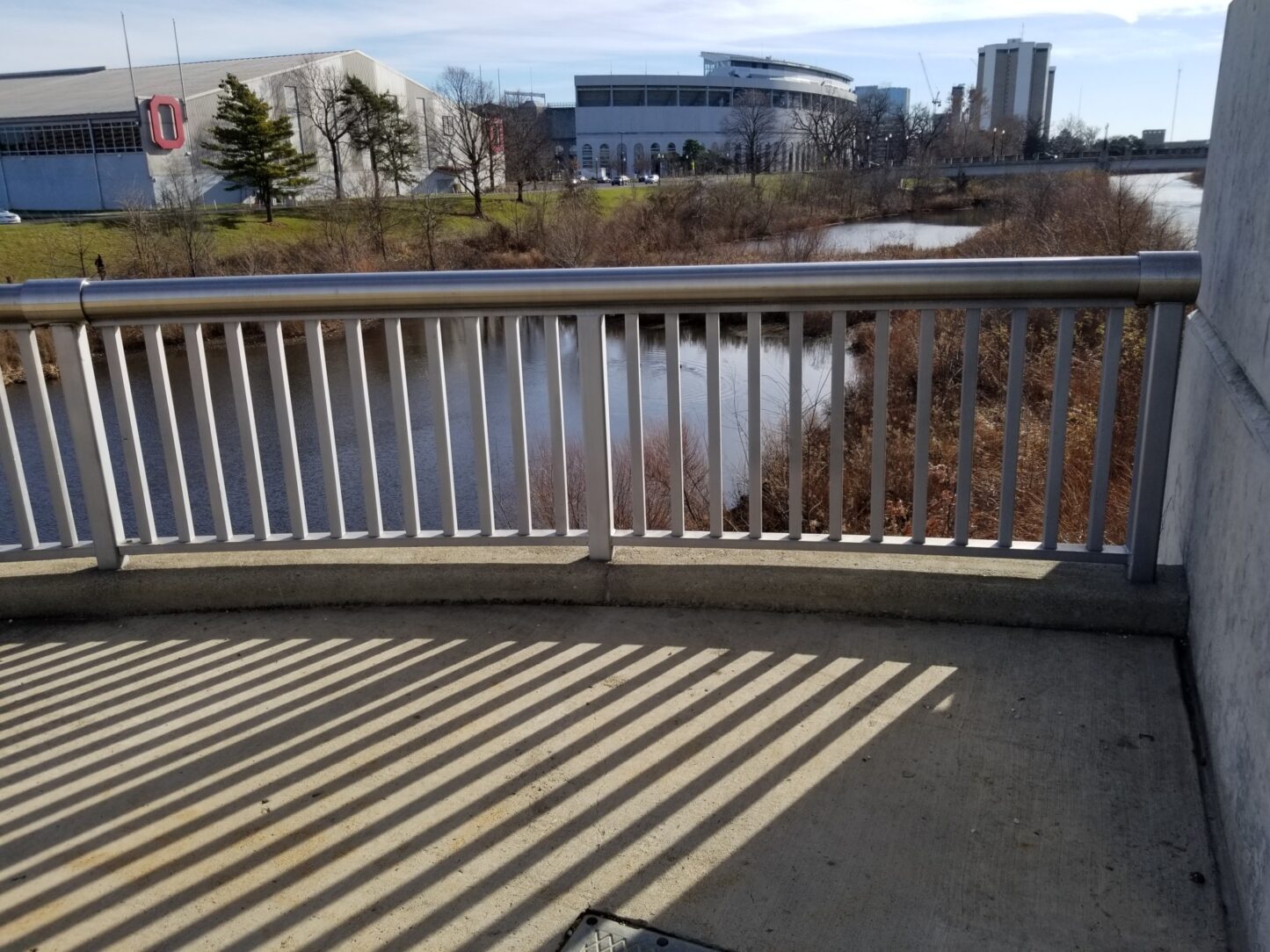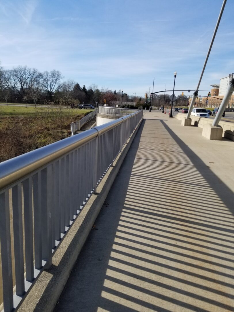 The design team and owners wanted the bridge to be maintenance free as to avoid any future closures, as the road is a critical connection on the Ohio State campus on either side of the river. To date, the team has gotten their money's worth as there are no signs of corrosion and no dollars spent maintaining the zinc coating for nearly twenty years of service life.