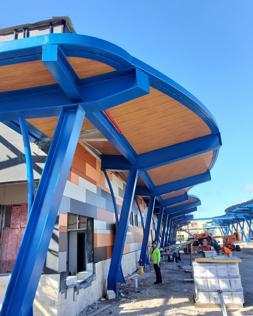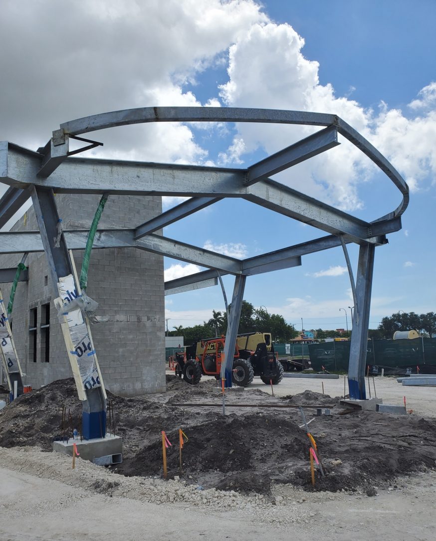 The canopies at the new transit center will be an important feature for travelers. Lauderhill, FL receives 63 inches of rain per year, 65% more than the US average. In additional to rainfall, large volumes of vehicle traffic will expose the new structures to corrosive exhaust fumes constantly. Selecting an adequate coating system is important for the longevity of the new structure and as a taxpayer funded facility, future costs would need to be kept to a minimum.