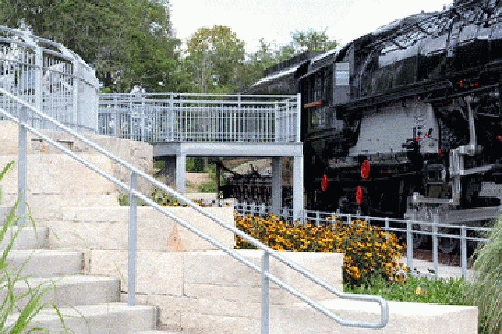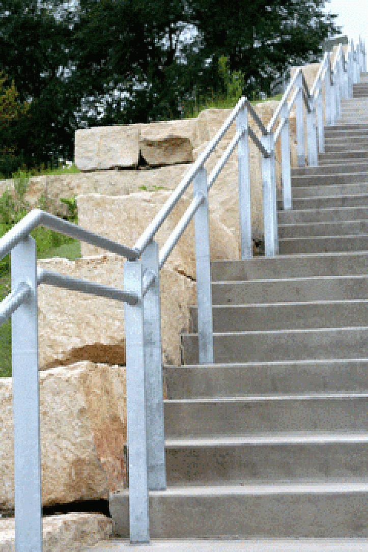 Situated atop a hill overlooking the Missouri River, the park is highly visible to the vehicles entering Omaha from Iowa, as well as visitors to the park. With the harsh winters in the Midwest high plains, the architect and fabricator of the project would only accept a highly galvanized product for its finish on the nearly 2 plus miles of steel surrounding the park. S&W Fence, a long time believer in galvanizing their projects for corrosion protection, surrounded the garden areas, stairs, walkways and locomotives with HDG steel to extend the life of the fence and handrails. All materials were hot-dip galvanized to provide the type of long-term coverage and protection desired to keep the Kenefick Park project in excellent condition and lower maintenance costs related to refinishing its surface.