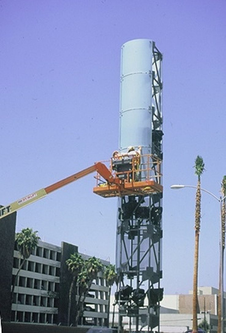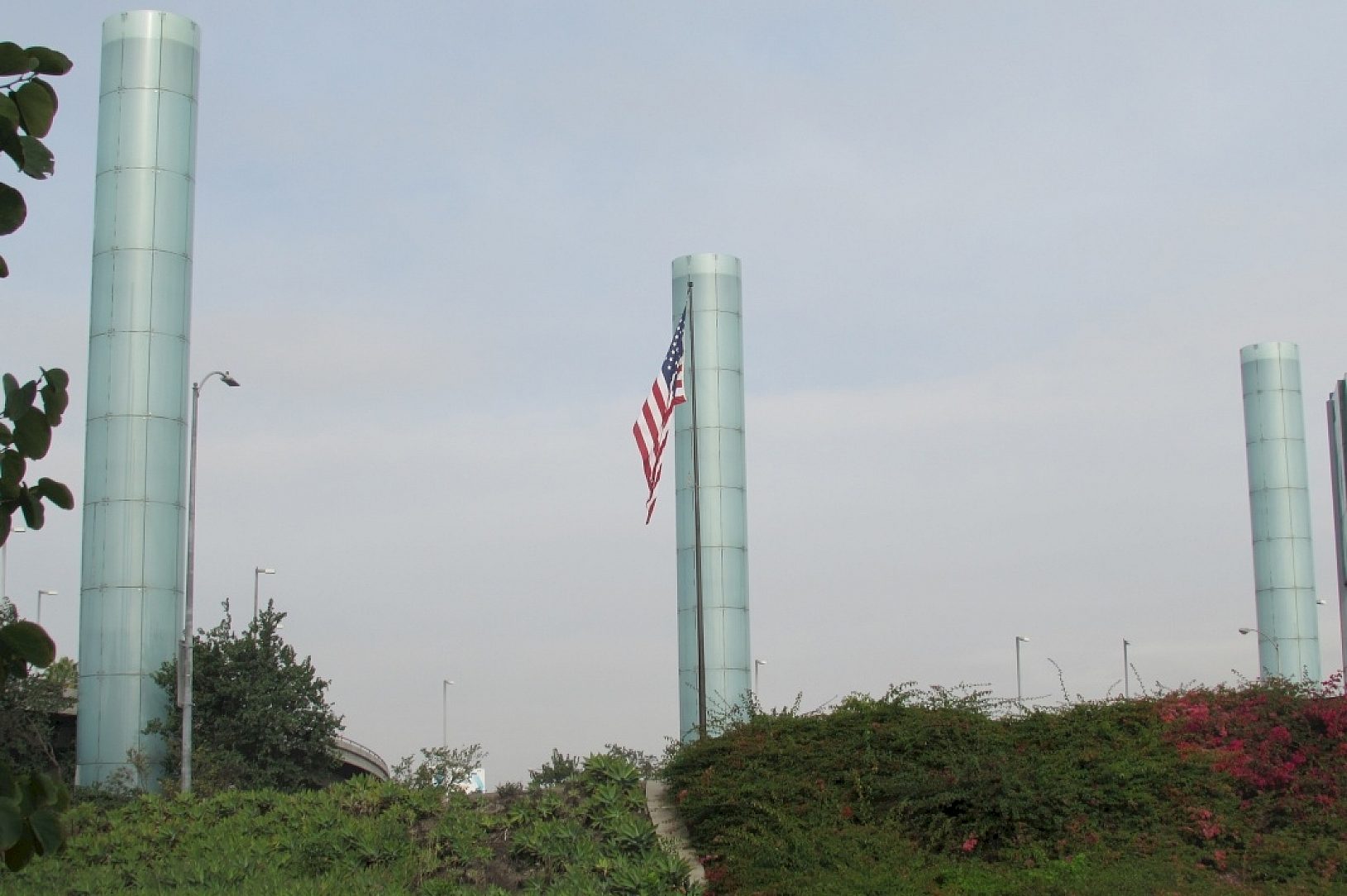 The design concept called for 11 illuminated pylons, 6 feet diameter ranging from 25 feet long to 60 feet long stretching down Century Boulevard and 15 illuminated pylons, 12 feet diameter each 100 feet high at the intersection entrance to the airport to create a beautiful and welcoming gateway of animated light blended with motion visible when arriving or leaving the airport. Every tower is internally illuminated and operates at 277V from the street lighting power grid but in order to operate the control electronics in each pylon, a step-down transformer is used to reduce voltage to 120V to the electronics. The pylons are all capable of changing colors remotely with thousands of different color combinations available via the use of advanced color changing luminaries, known not only for their even color distribution and compact size but also for limited daily power requirements.