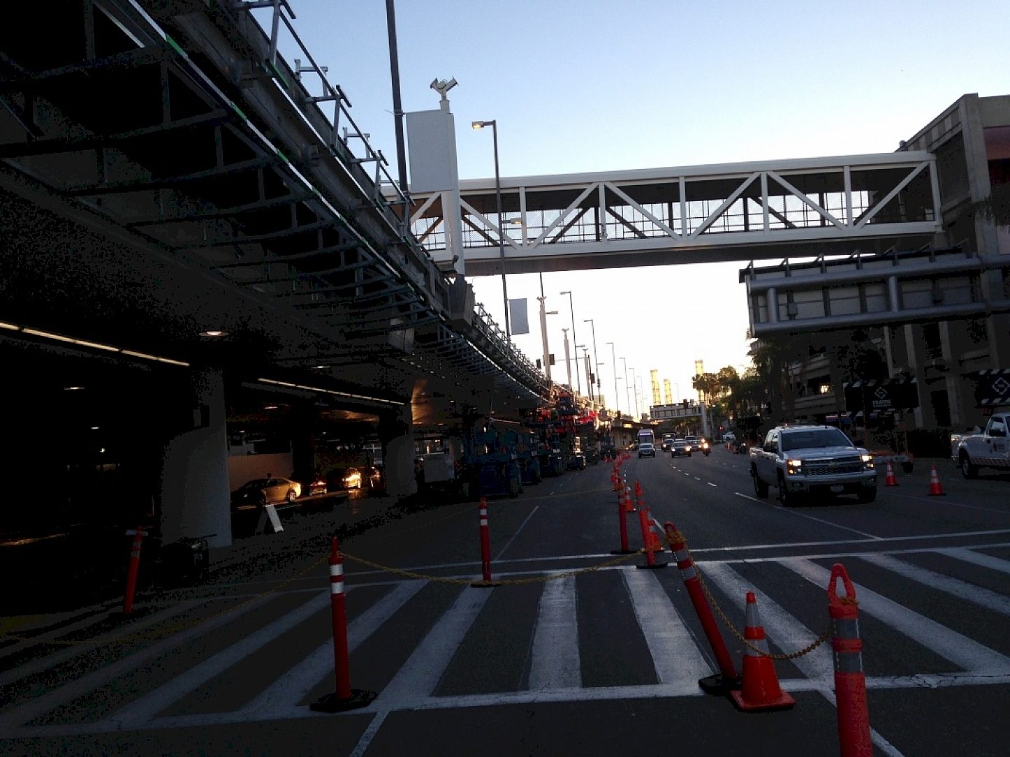 The LAX Terminal Area Curbside Appeal Project was commissioned to tie together significant key architectural elements located at The Los Angeles International Airport which include the iconic 1960s Theme Building (flying saucer), the 2000 LAX gateway light pylons and the newly designed and constructed terminal light ribbons with vintage art-deco light poles.