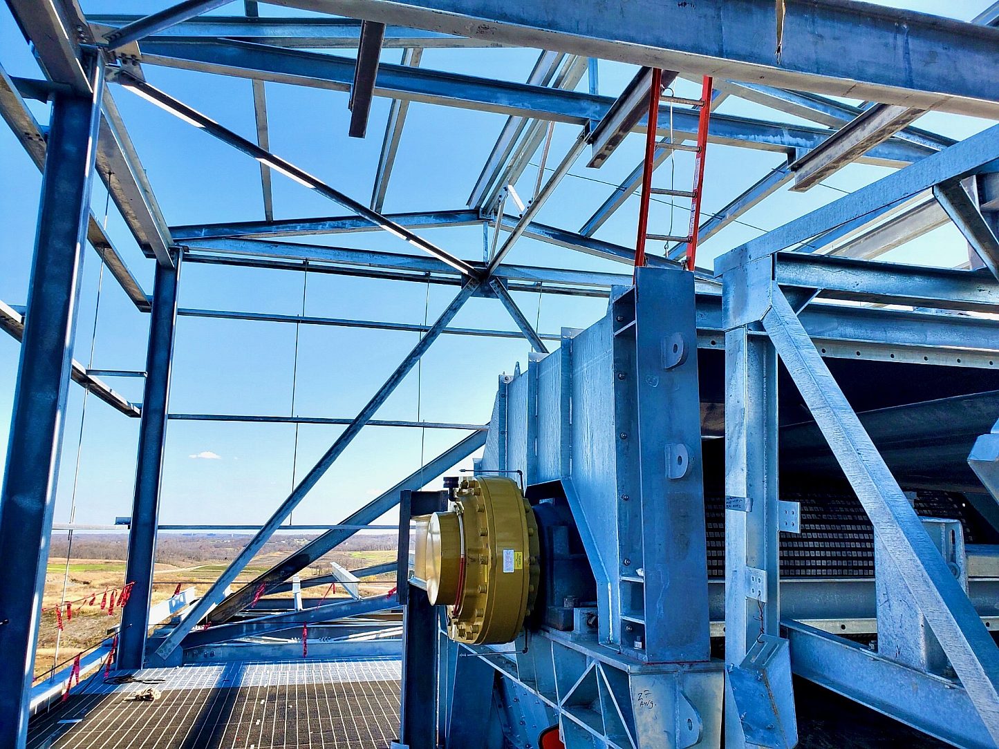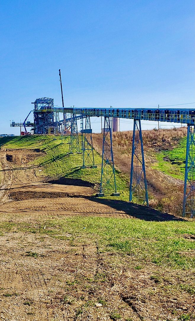However, in November of 2019 a fire broke out causing damage to three levels of the loading platform as well as ¼-mile of the pipe conveyor leading to the sorting/loading tower. Thus leaving the transport conveyor inoperable. The fire caused roughly $2 million in damages to the original building/conveyor. The design called for galvanizing due to the rough corrosive elements from the CCR, as well as the overland conveyors exposure to its industrial atmosphere. With the original coating damaged and initial international design, a choice to salvage what members could be reprocessed was made by LGE.