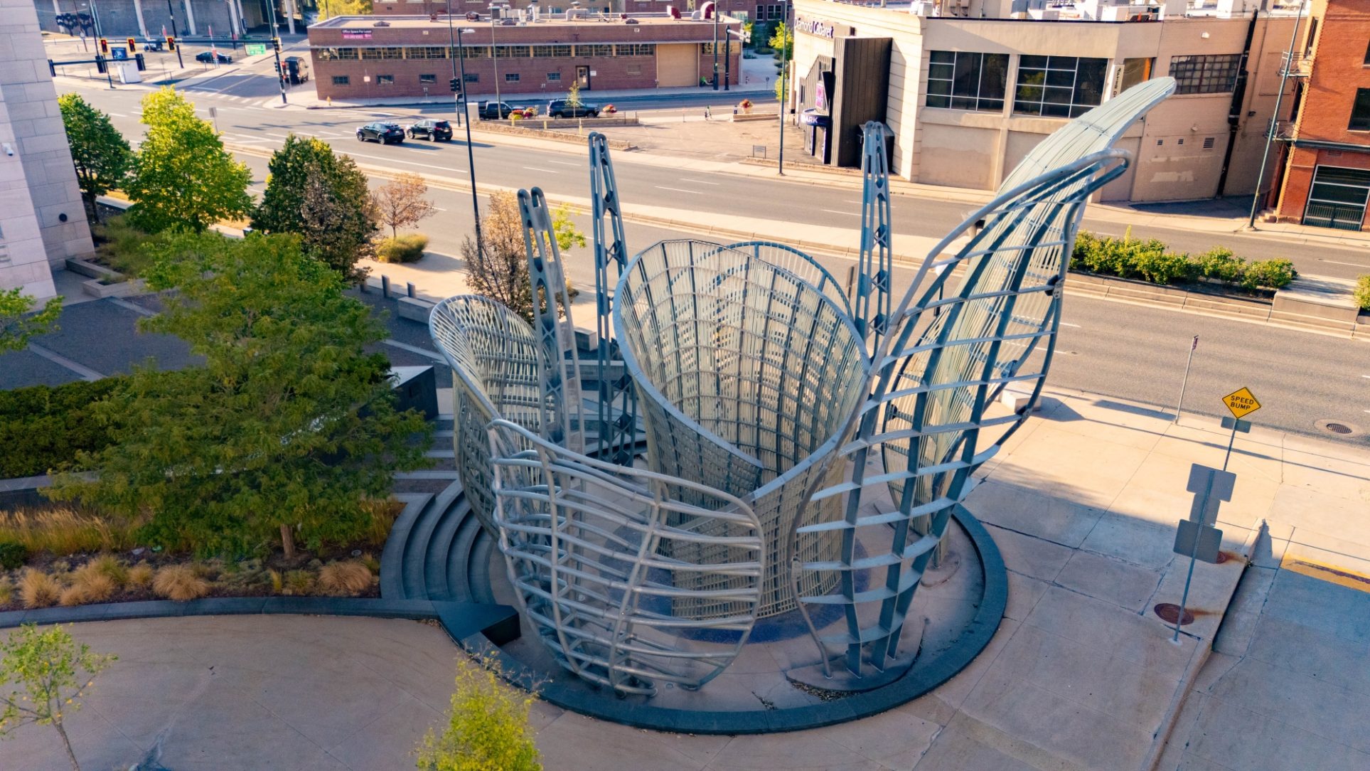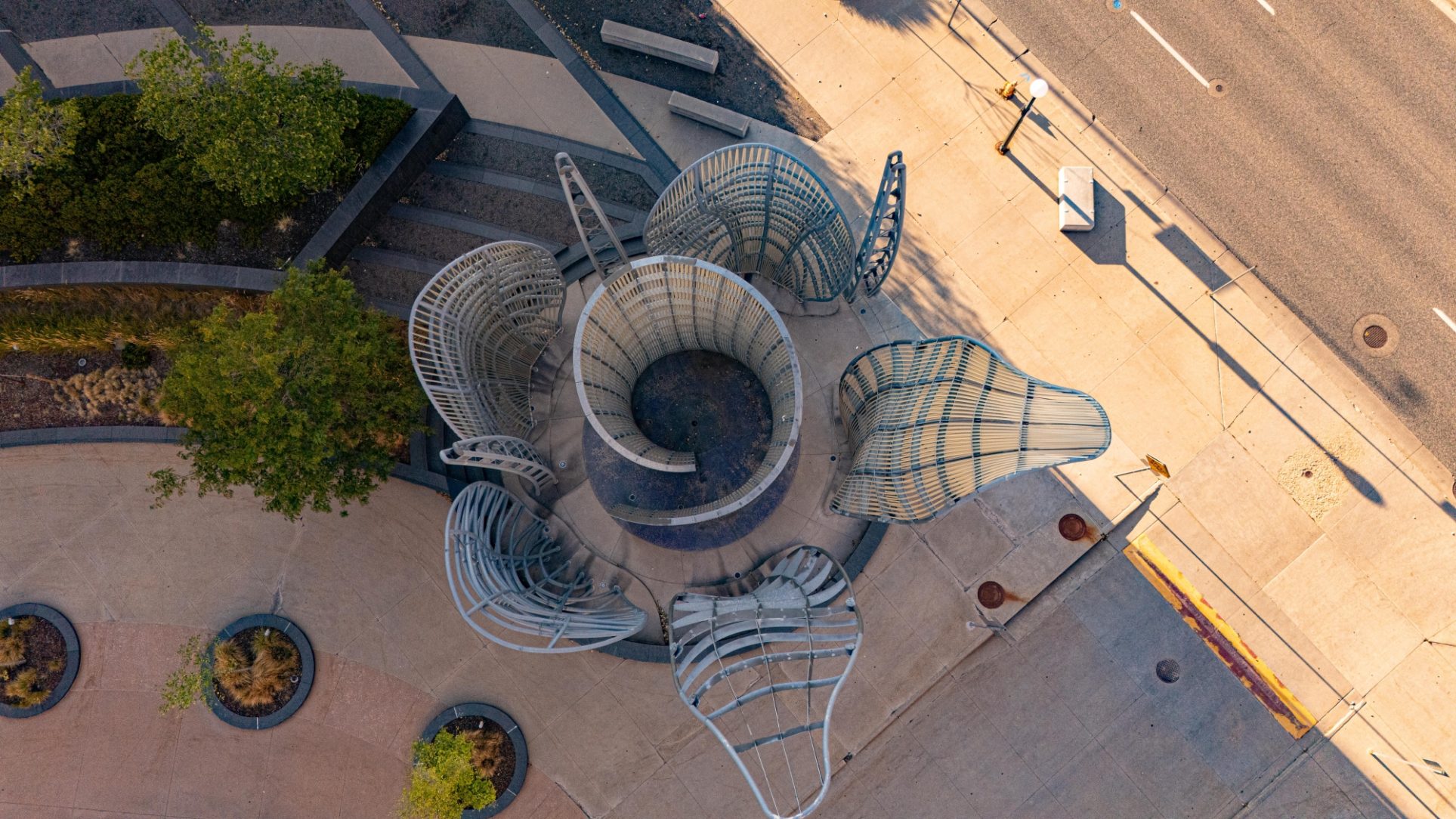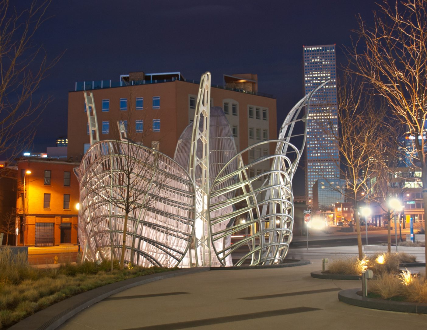 By night, the sculpture’s illumination completes the metaphor. Uplighting gathers along the ribs and pathways, sending a gentle radiance through the petals so they appear to breathe, an open hand rather than a raised wall. For many who pass after dark, including neighbors, without stable shelter, that light offers more than visibility; it offers welcome. The piece acts as a steady beacon on the courthouse block, signaling that public space belongs to the public, to everyone, as a place to pause, to orient, and to be seen.